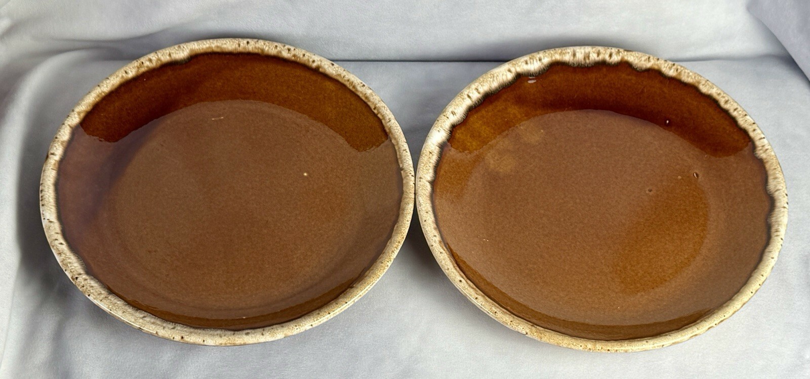 Set of 2 Hull Pottery USA Brown OvenProof 10.5" Dinner Plates Vintage MCM