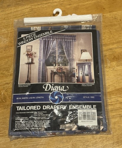 Vtg Fabrican Blue Floral 5 Piece Curtain Tailored Drapery Ensemble Diana
