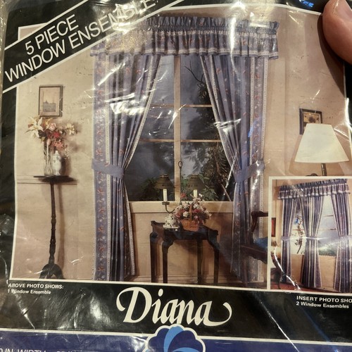Vtg Fabrican Blue Floral 5 Piece Curtain Tailored Drapery Ensemble Diana