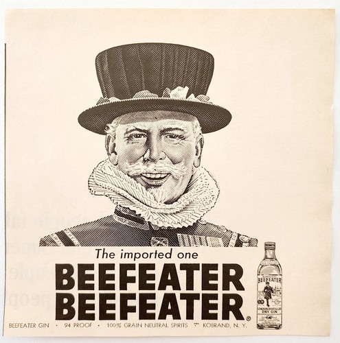 1965 Burroughs Beefeater London Dry Gin Advertisement Liquor Distillery E91D