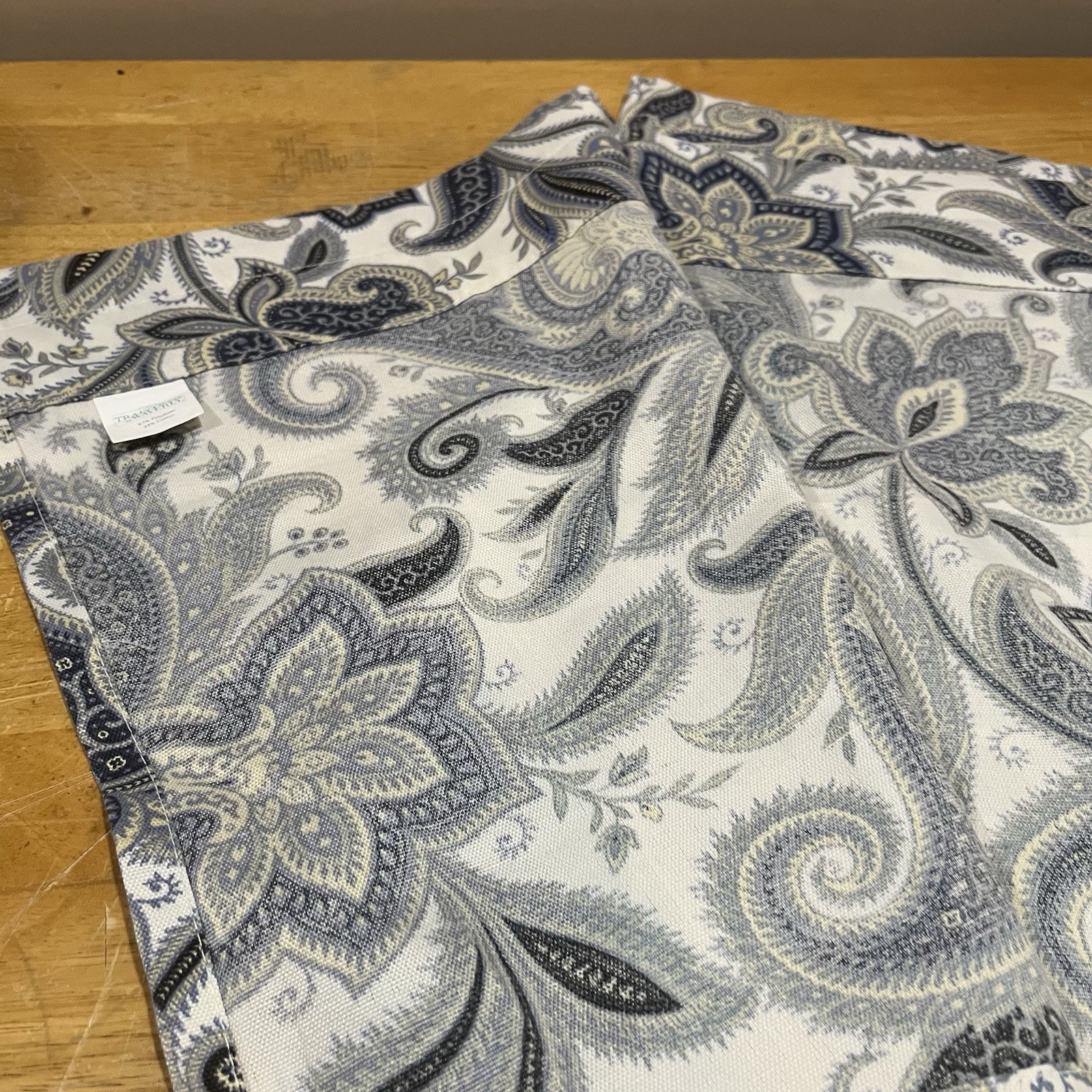 Waverly Rustic Retreat Jacobean Tasseled Valance Porcelain Blue 54x43” Pointed