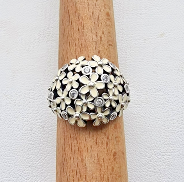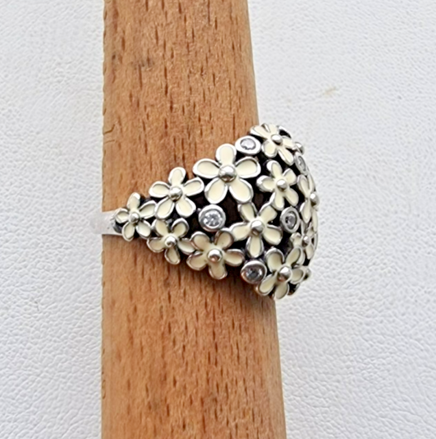 AUTHENTIC PANDORA 925 STERLING SILVER DARLING DAISY BOUQUET ENAMEL RING SIZE 8.5