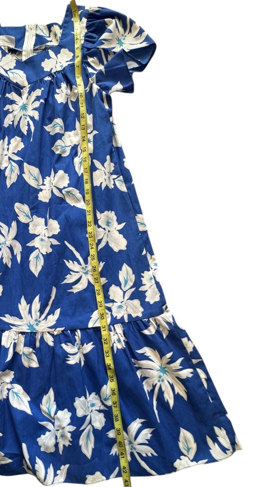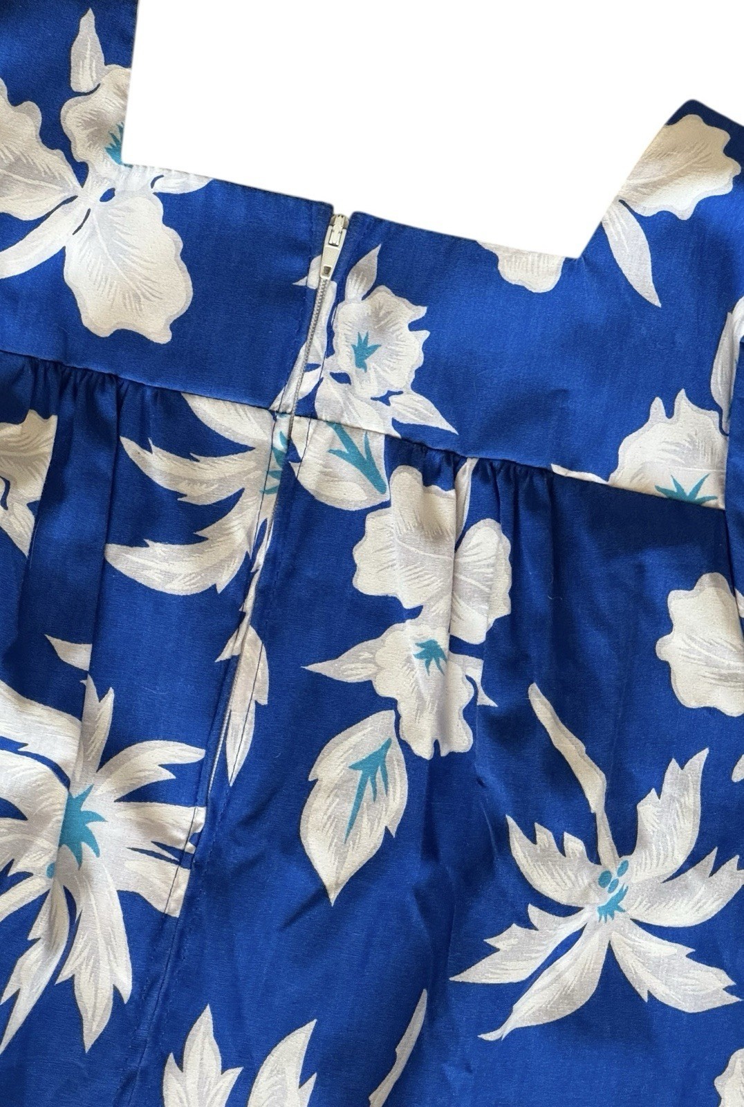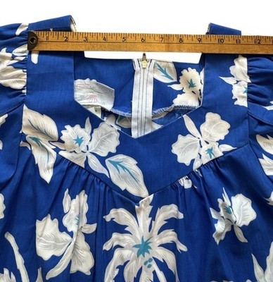 VTG Royal Creations Hawaiian Dress Size S Blue Palm Trees Floral Muumuu Midi