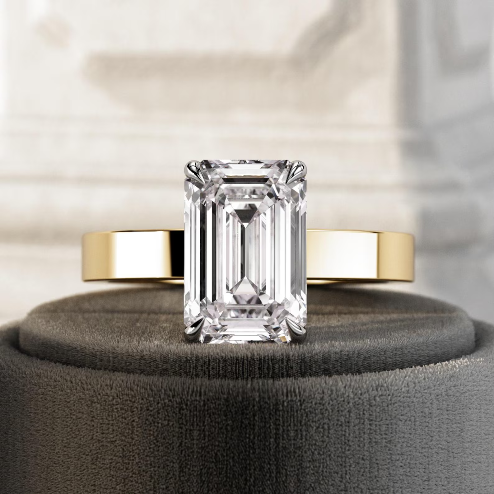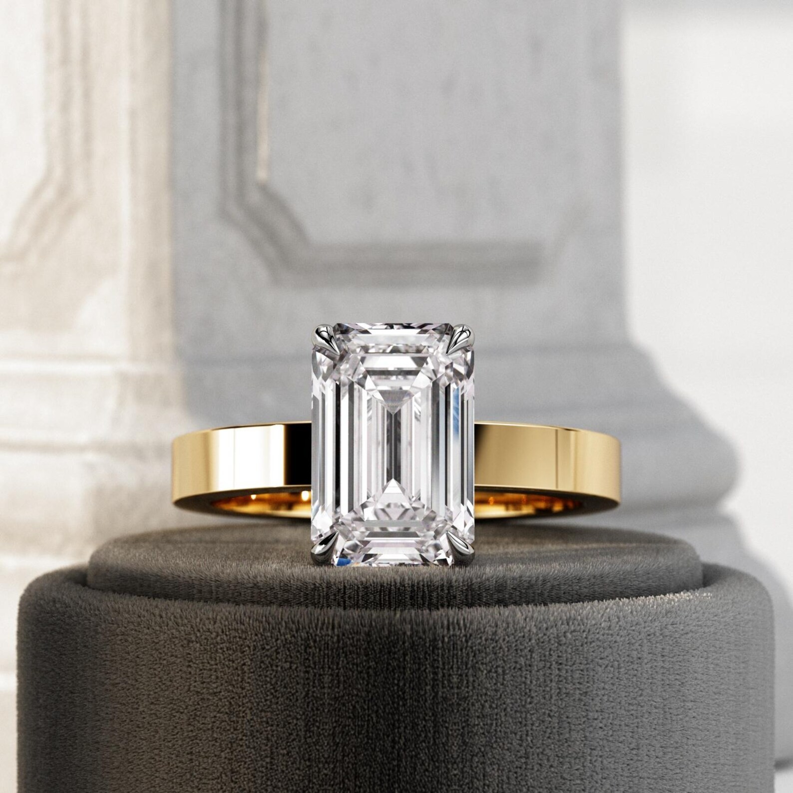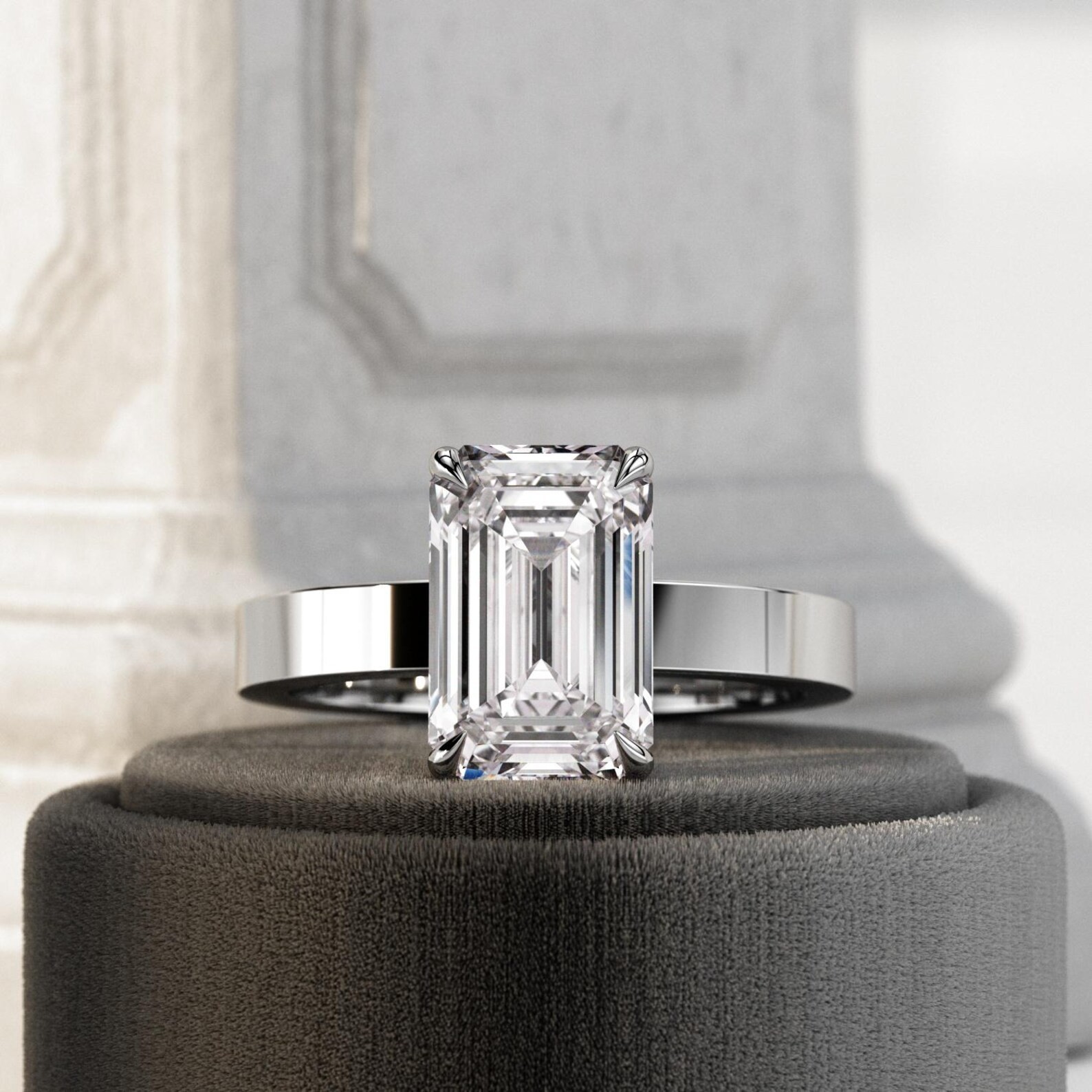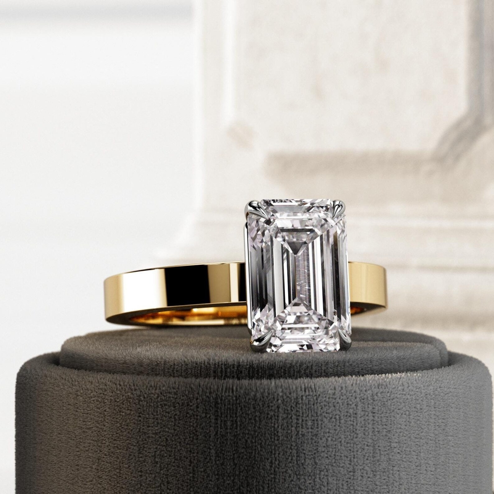 3 Ct Elongated Emerald Cut E VVS2 Lab Grown Diamond Ring / 3.5MM Wide Cigar Band