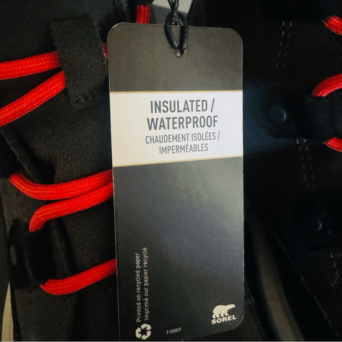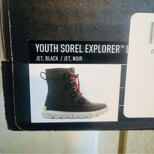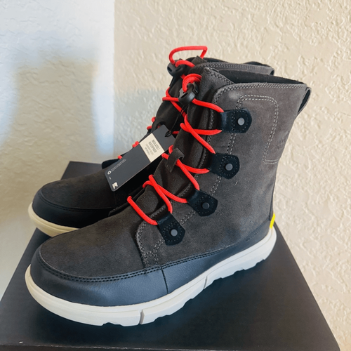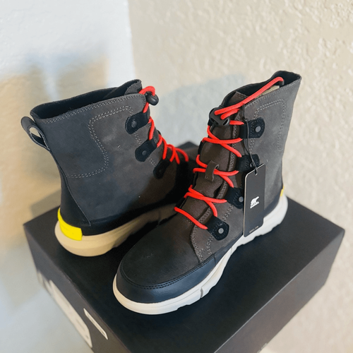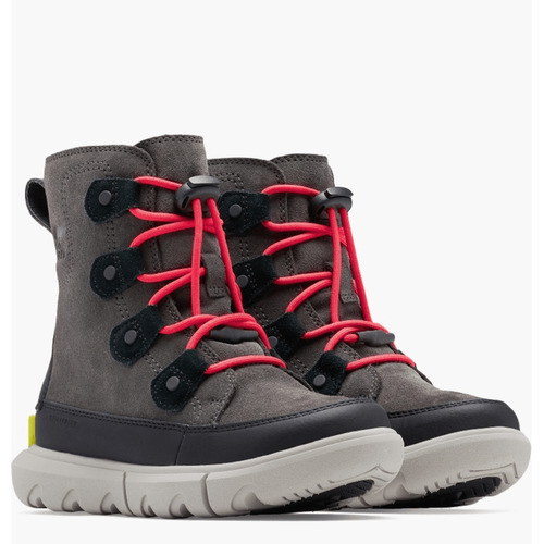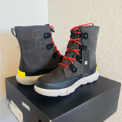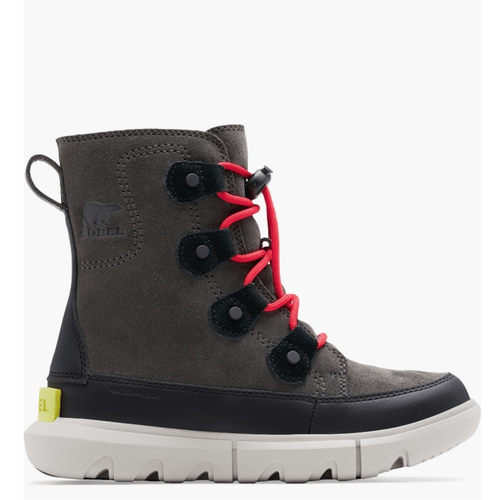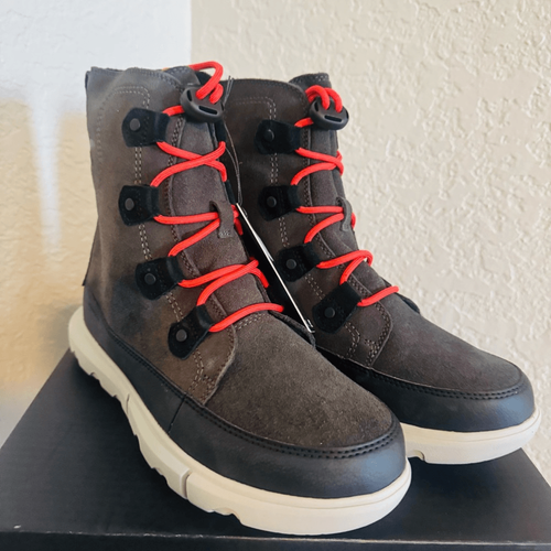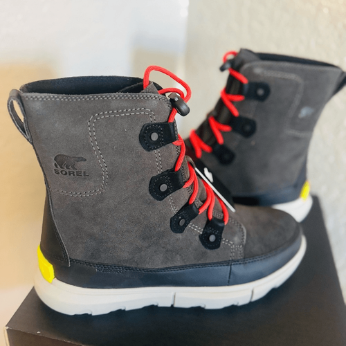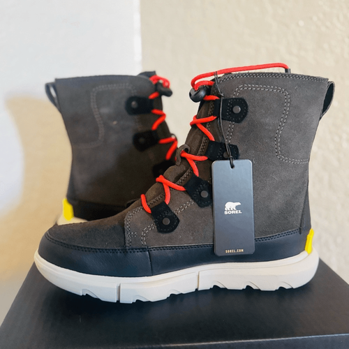 SOREL Kids' Explorer Waterproof Insulated Boot, Size 7, Black/Gray/Red, NWT