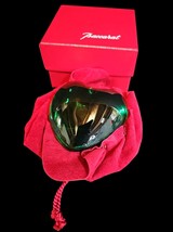 Authentic Baccarat Green Crystal Puffy Heart Paperweight 3" Signed w/Box & Pouch
