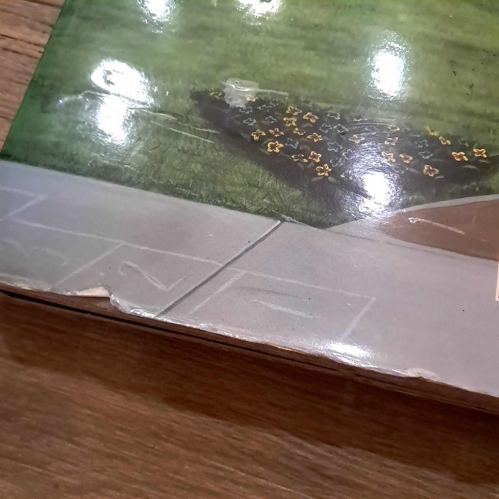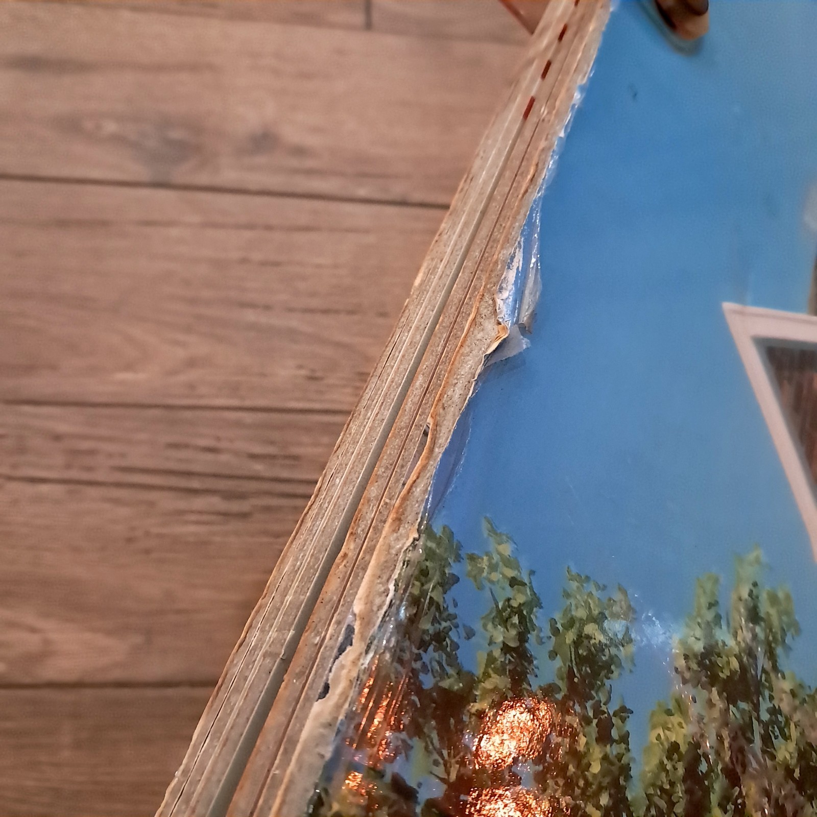 Spotting to the handles. Wear to to the cover/bending especially to the corners and some of the layers of the pages are splitting. Actual scenes are in good condition. See pics.