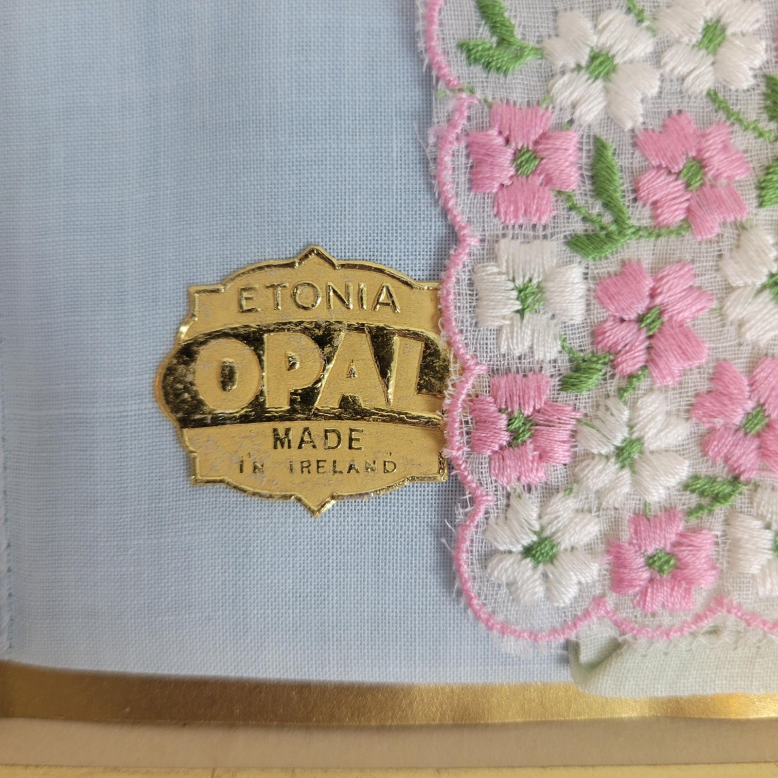 Vintage Ireland Embroidered Handkerchiefs NEW 4 Irish Linen Etonia Opal Floral