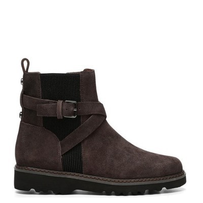 DONALD PLINER Buckled Lug Sole Bootie, Suede Leather, Dark Brown, Size 12, NWT