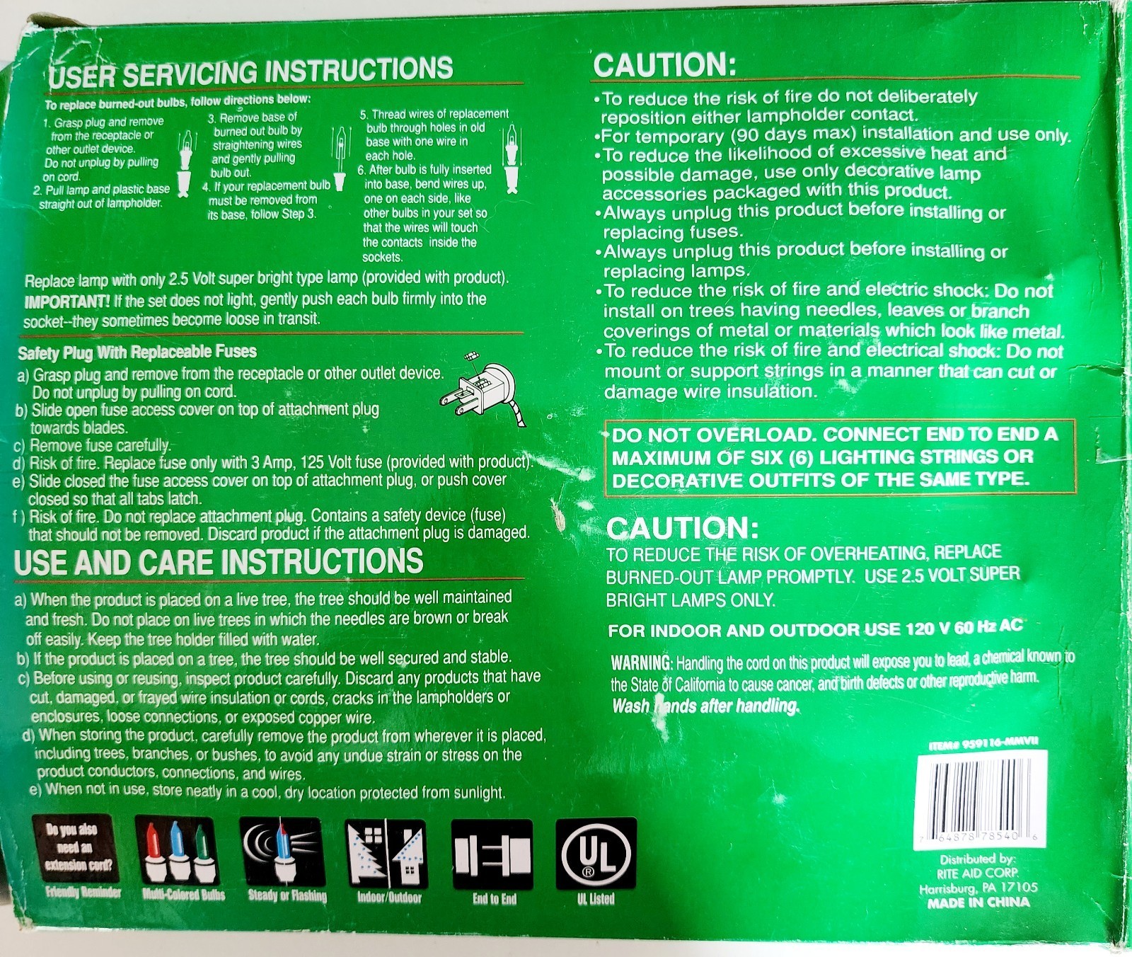 Vintage 1990s Rite Aid Yule Rite 100 Multi Mini Christmas Lights OBTested INVR