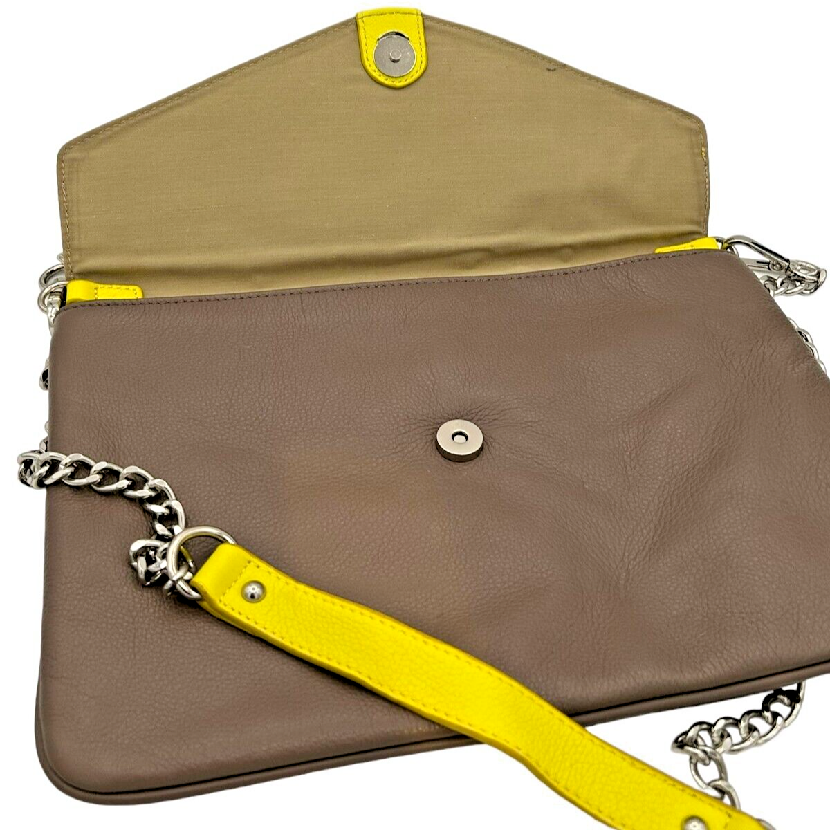 cynthia rowley envelope cross body shoulder bag taupe & yellow 12 x 9 inches EUC