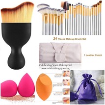 Models on the go love our Premium Makeup kit. Our colorful, refillable makeup bag and case holds 24 Cruelty-Free synthetic fiber bristle brushes and includes a premium face contour brush plus 3 premium sponges.