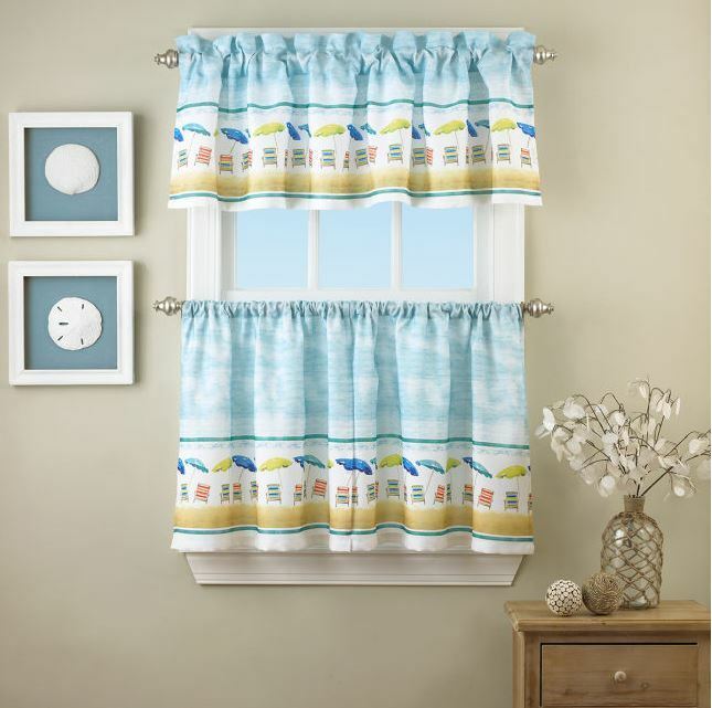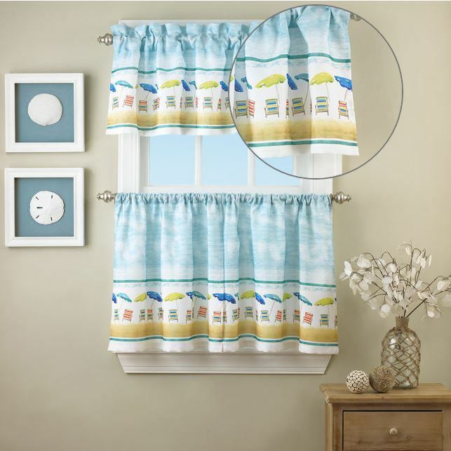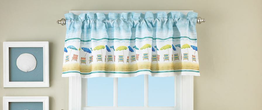 beautiful St.Tropez wherever you hang these fun window curtain valances that feature vibrantly-colored beach chairs and umbrellas that take in