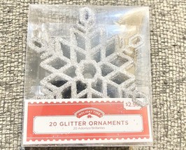 Holiday Time 20 Silver Glittery Christmas Shatterproof Snowflake Ornaments 4 In.