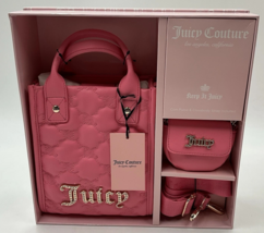 The Juicy Couture Taking The Lead Pink Lemonade 3PC Set is a stylish and chic satchel/top handle bag made from faux leather in a vibrant pink color. This set includes a matching crossbody bag and wallet, all featuring a zip closure and pink handles/straps. The rayon fabric lining in pink adds a touch of luxury to the overall design. With the iconic Juicy Couture branding and a trendy design, this set is a must-have for any fashion-forward woman looking to make a statement.