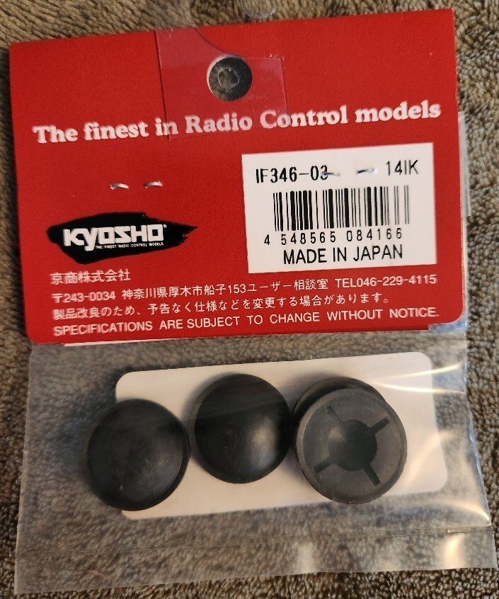 This is a set of four diaphragms designed for the Kyosho 1:10 scale electric cars, specifically for the big shock absorbers. The diaphragms are identified by the manufacturer part number IF346-03.