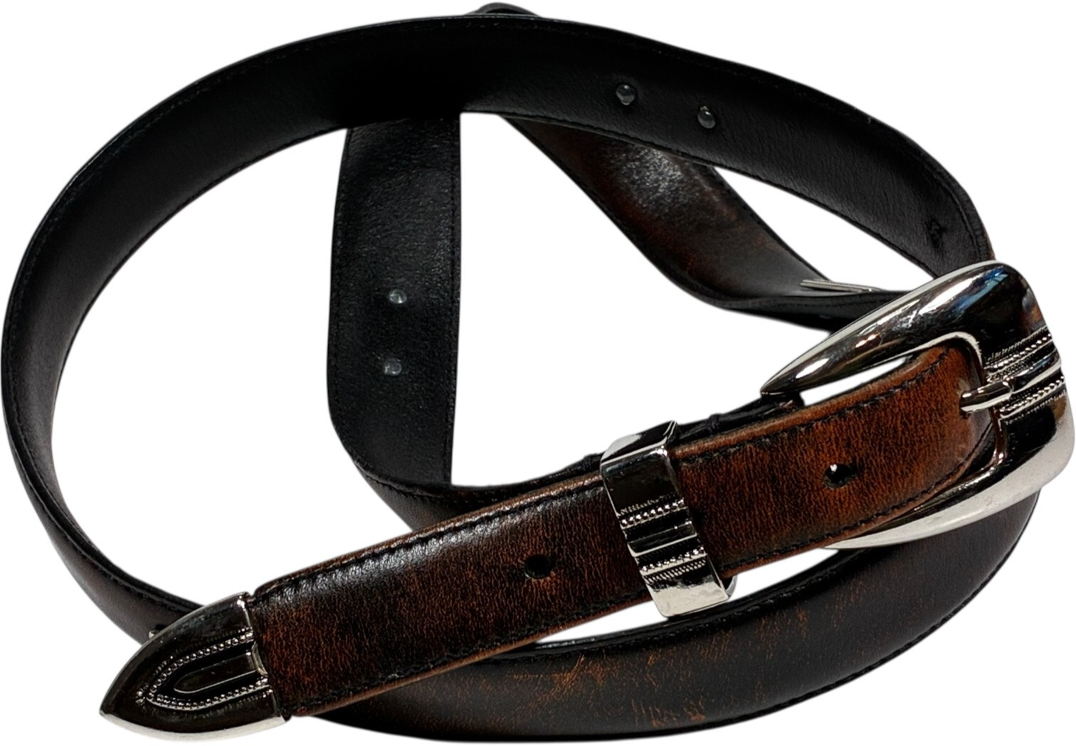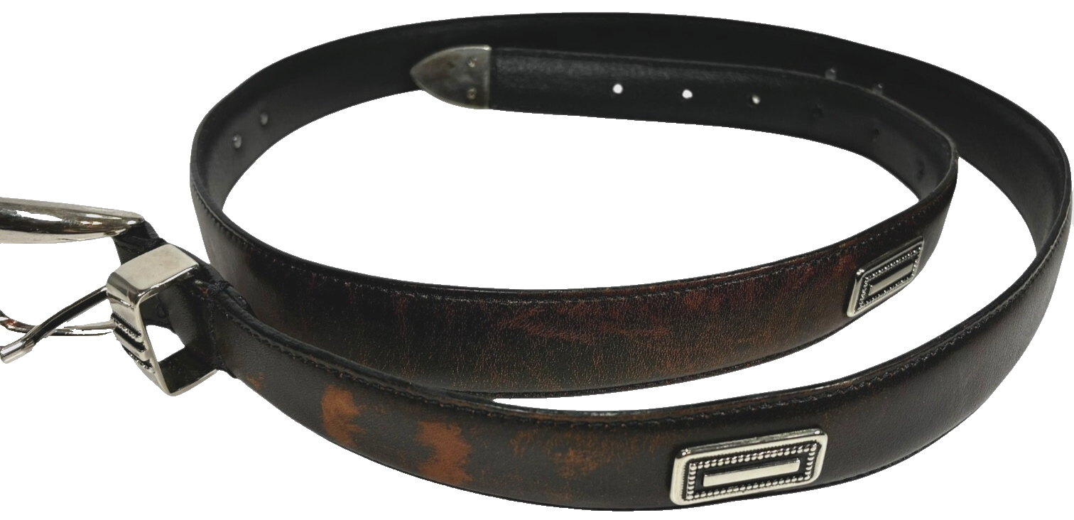 FOSSIL men's 44 inch Brown Leather 44 Belt Silver Concho Accents 1" Wide