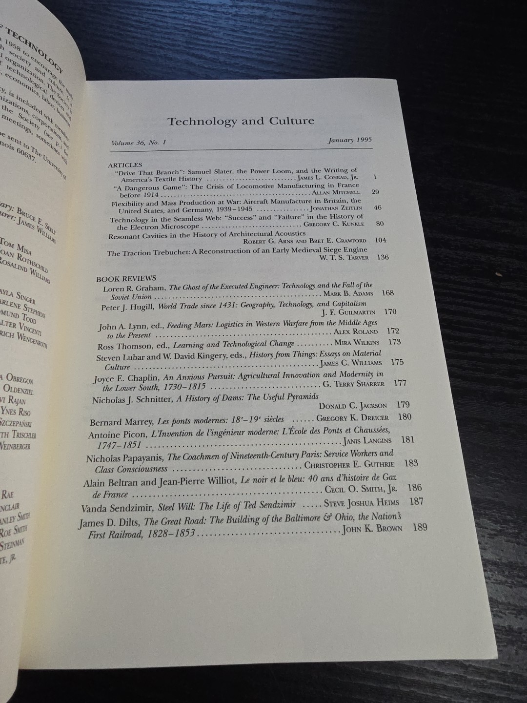 Technology & Culture International Quarterly Society History 1985 Vol 36 #1