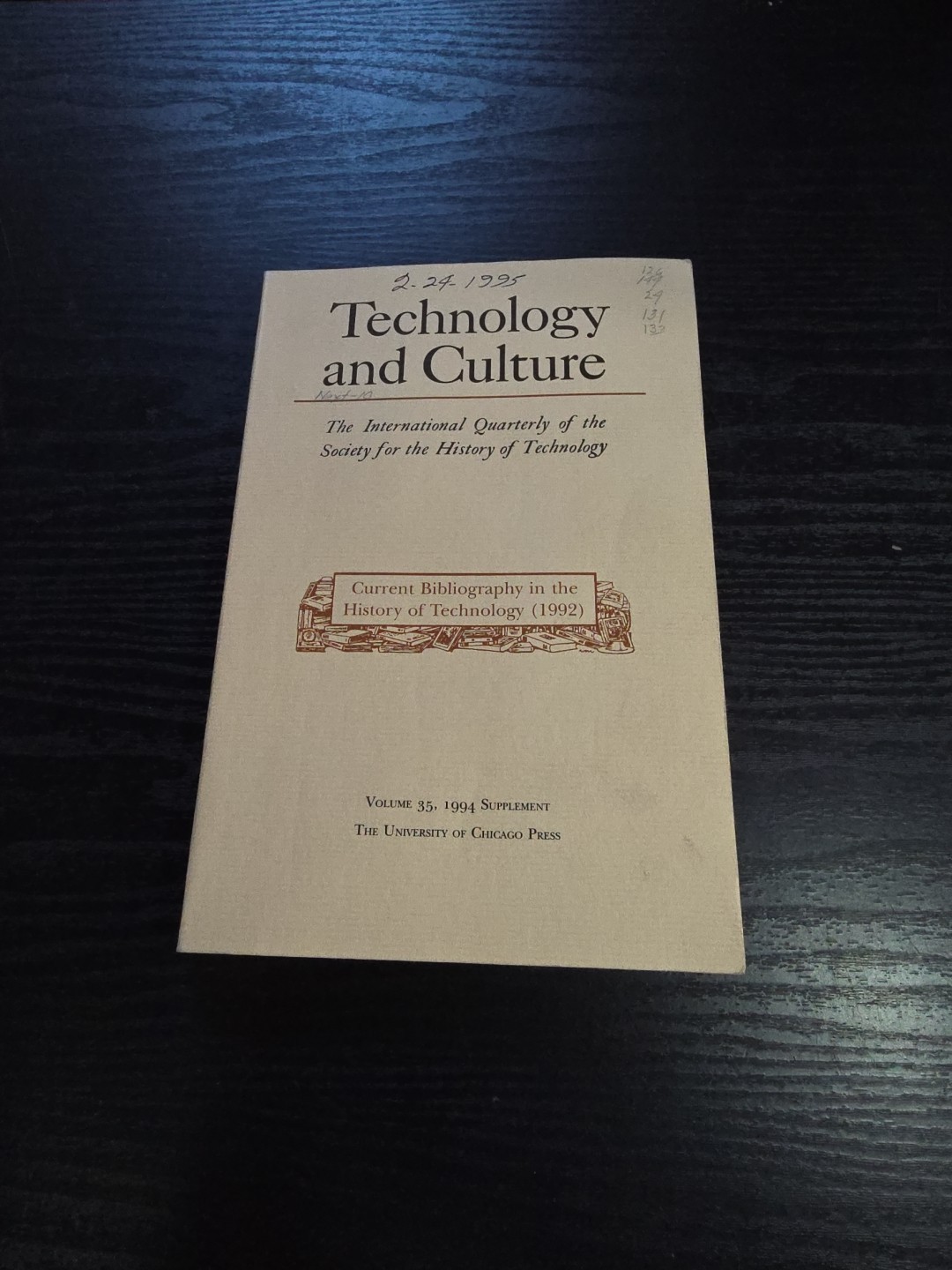 Technology & Culture International Quarterly Society History 1994 Bibliography