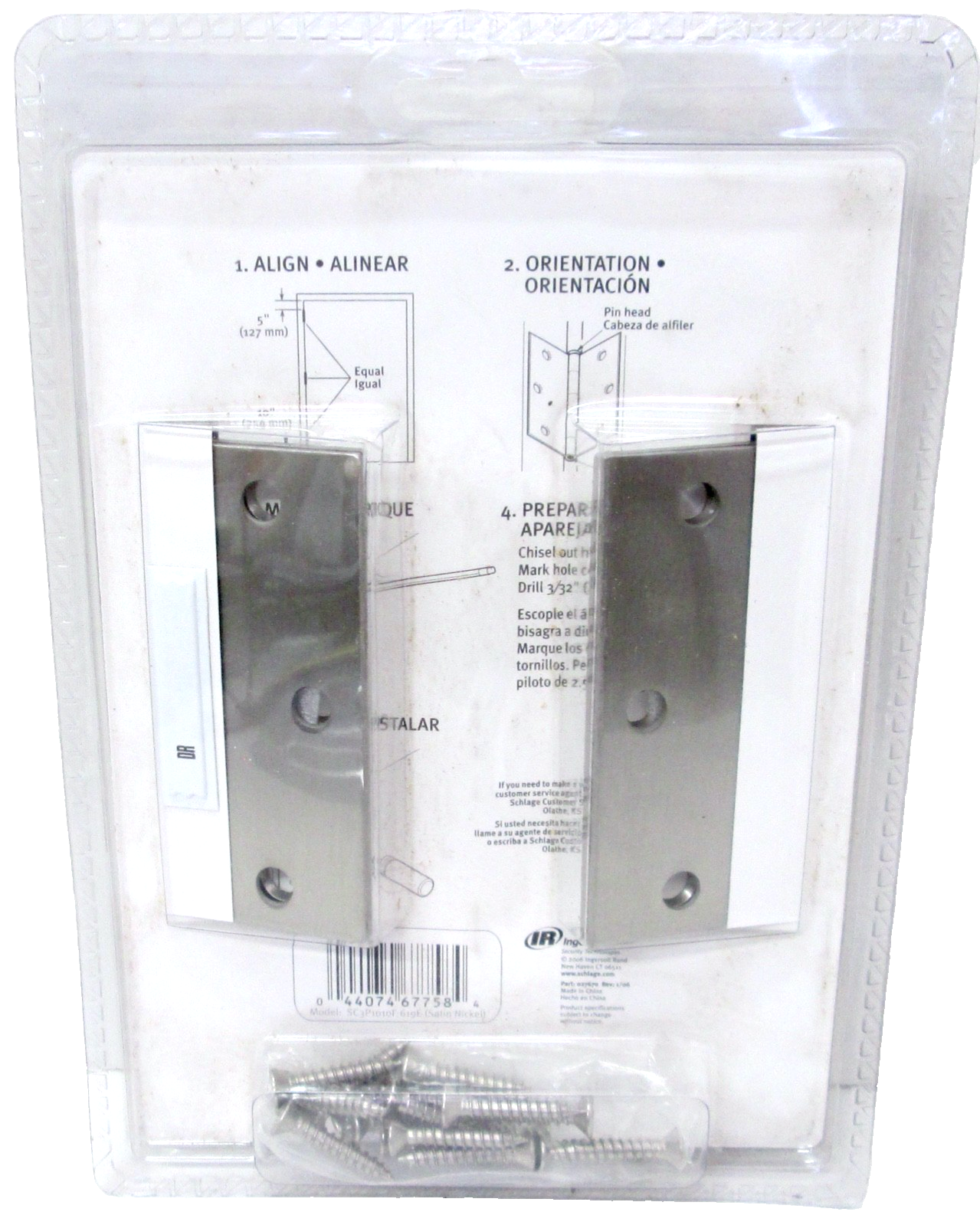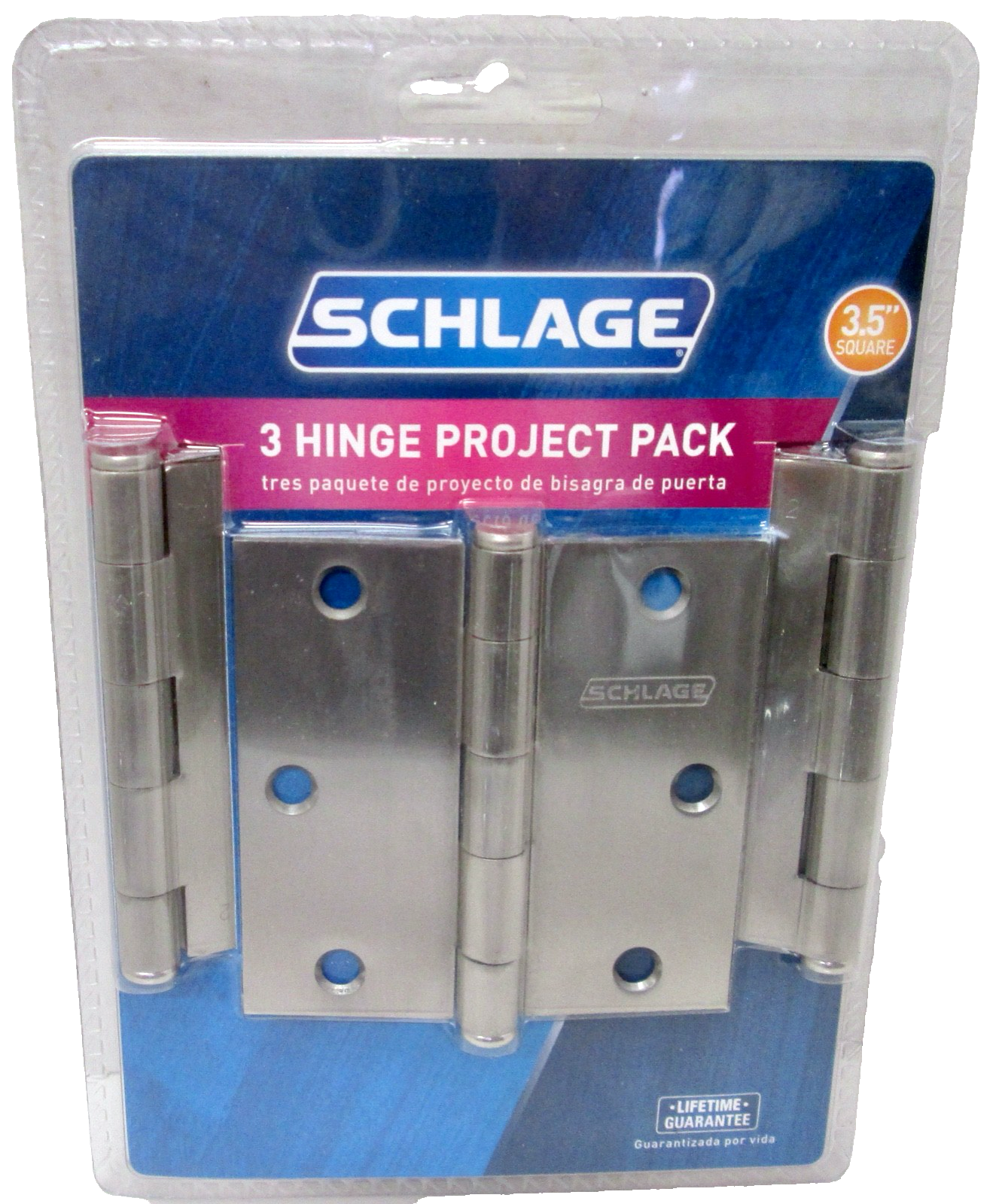 New Schlage 3 Hinge Project Pack, 3.5" , Square with Satin Nickel Finish. Includes mounting screws. Sold with free shipping.