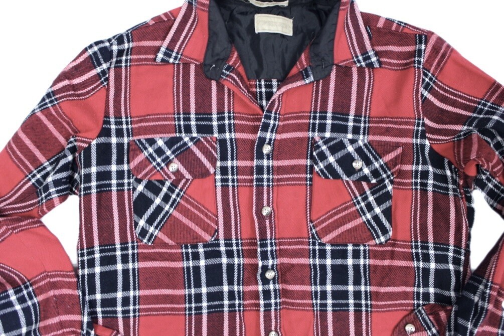 Vintage 70s Timber Run Red Plaid Flannel Shirt Grunge Korea Acrylic Men’s M