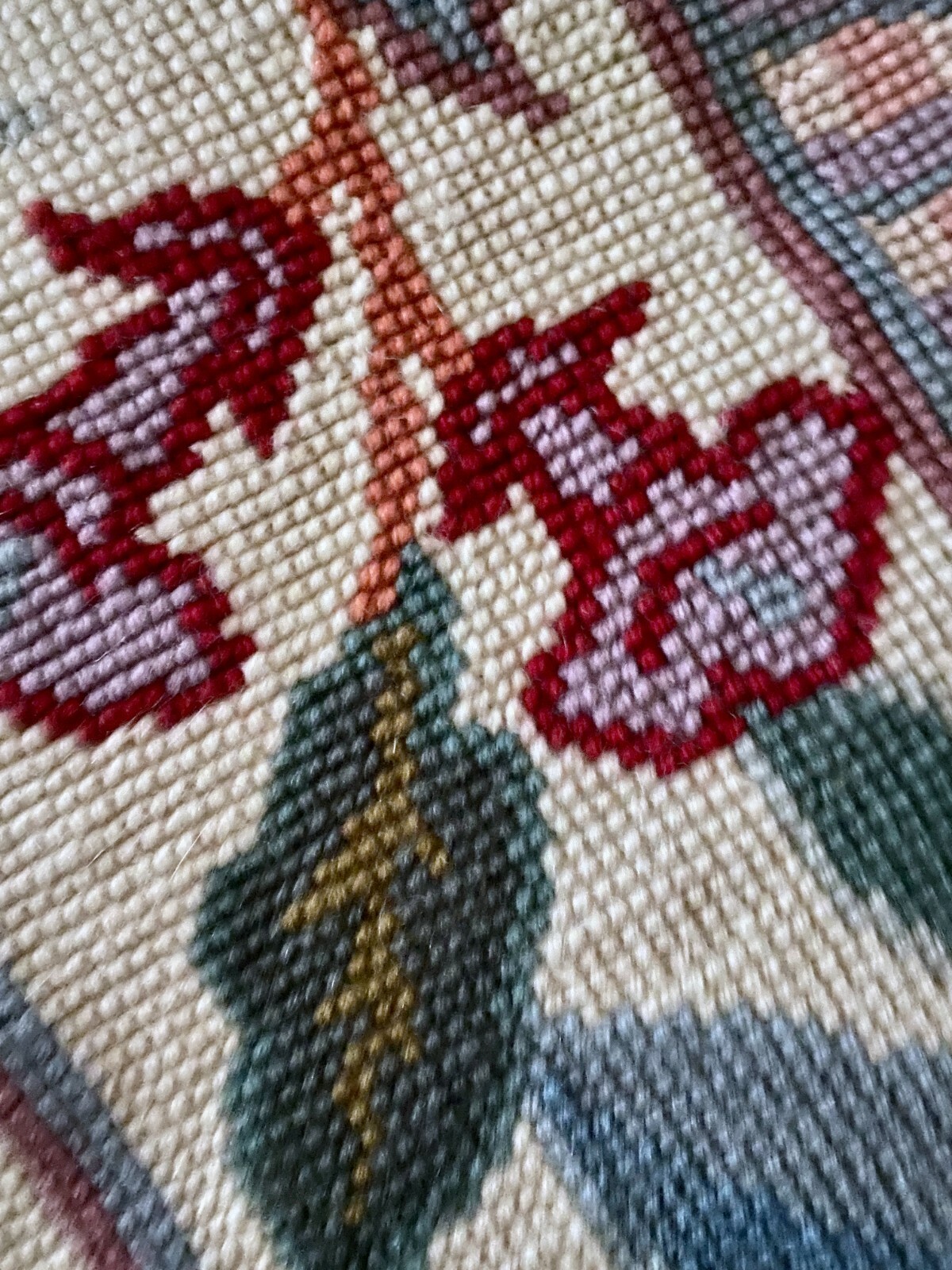 Vintage Needlepoint Rug Wool Floral 6'x 4' wide Traditional Cottage Hand Made