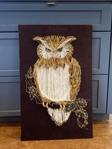 Vintage mid century 3-D Owl String & wool Art Retro Wall Decor 29" x 18"