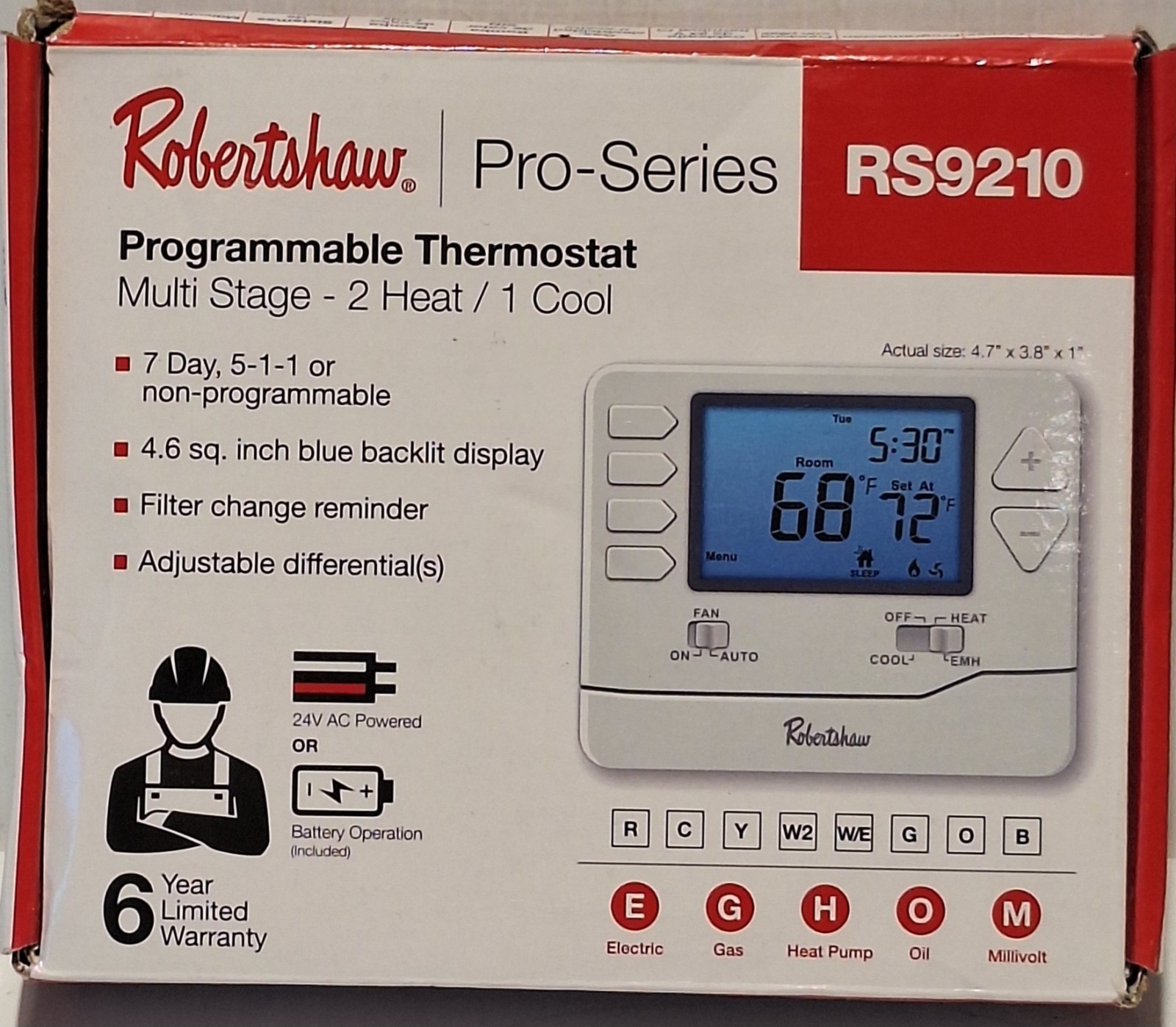 Robertshaw Programmable Multi-Stage 2H/1C 7 Day Wall Thermostat RS9210