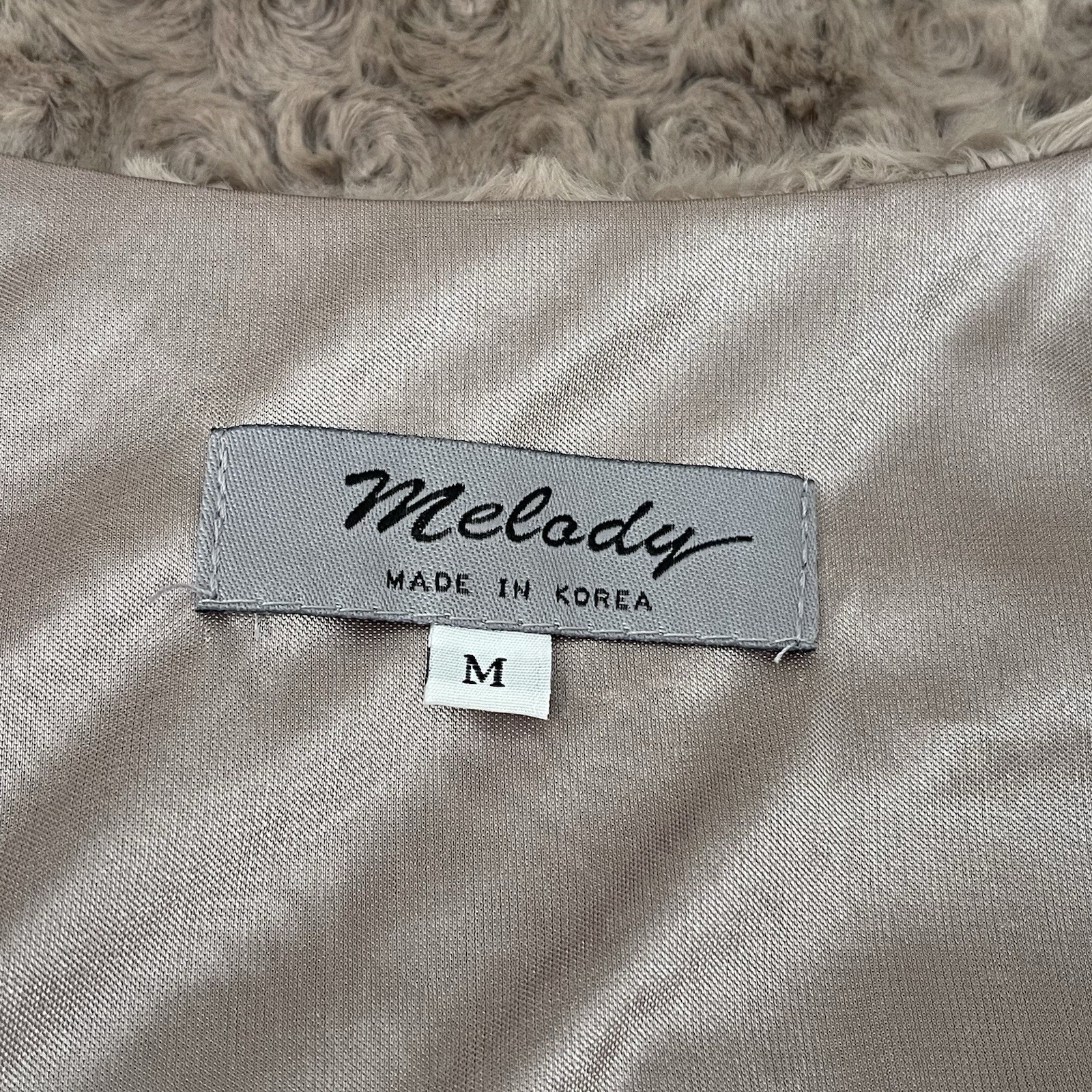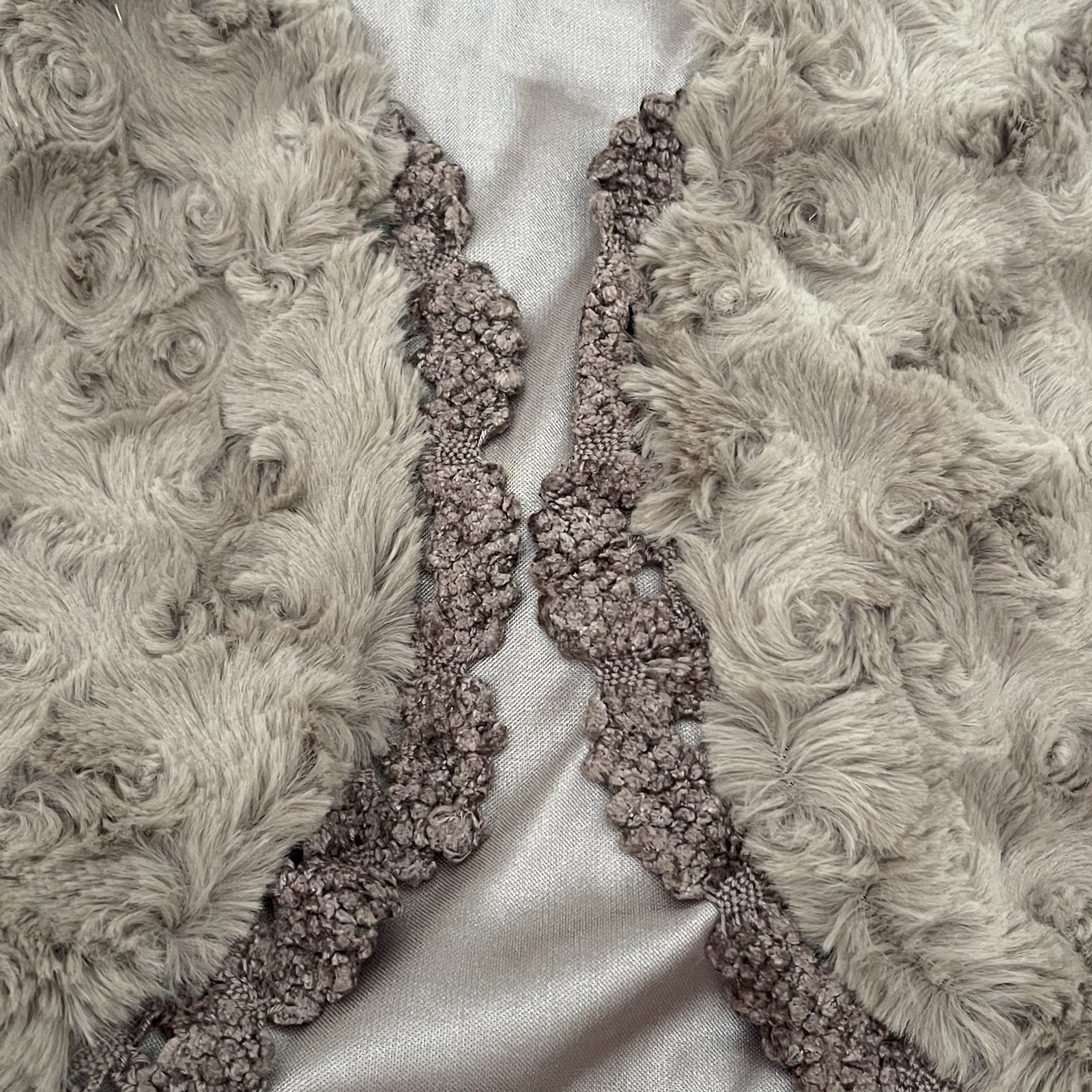 Faux Fur Cropped Bolero Vest Size M Mocha Taupe Rosette Satin Open Boho Fall NWT