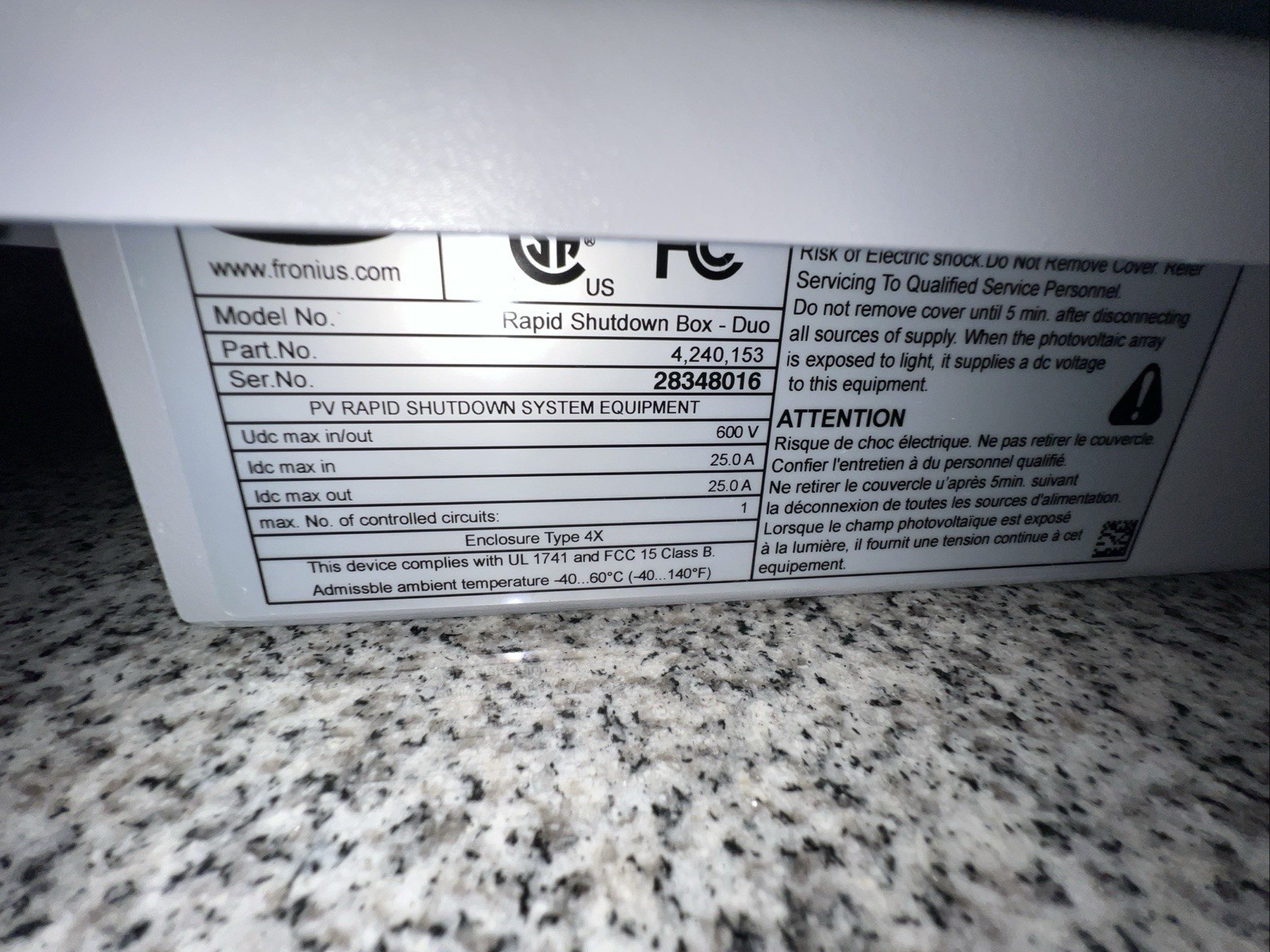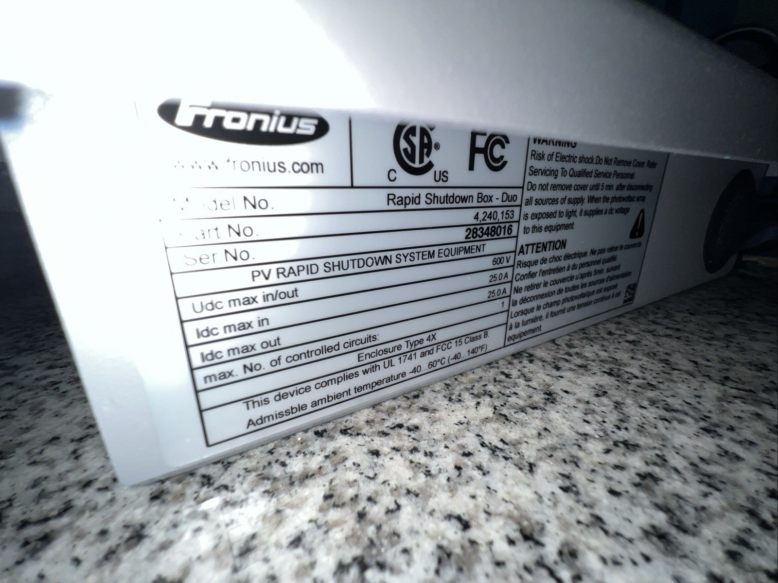 NEW Fronius Rapid Shutdown Box 4,240,153 600V Dual Input Solar