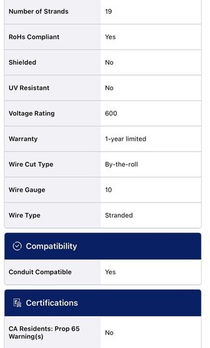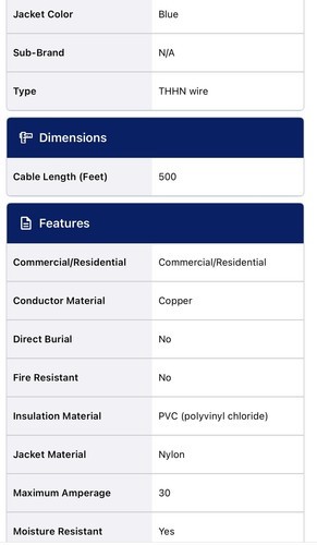 Blue Stranded Insulated THNN 10 AWG ~ 500 and 50 similar items