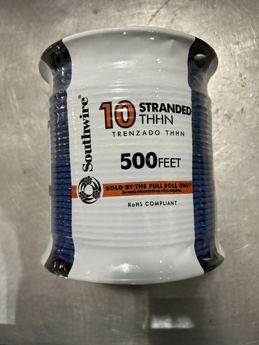 Blue Stranded Insulated THNN 10 AWG ~ 500 Feet ~ Southwire Electrical Wire