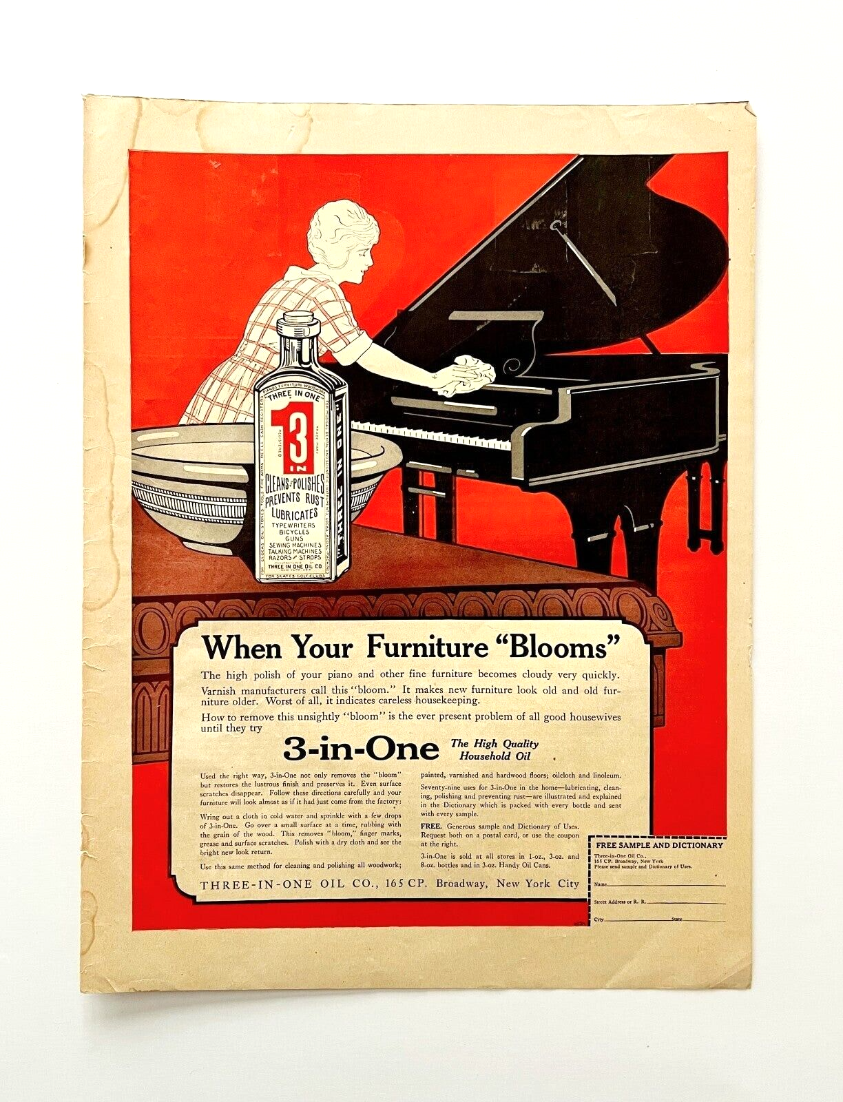 1922 3-in-1 Oil Clean & Polish Piano XL Advertisement Industrial 14 x 10.5"