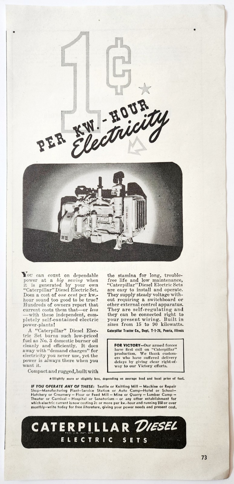 1942 Caterpillar Diesel Electric Sets Advertisement Industrial WW2 Era E90G1