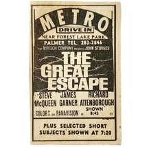 1963 Metro Drive In The Great Escape Movie Advertisement Steve McQueen Film F6F