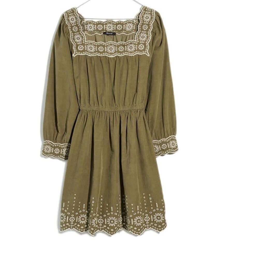 MADEWELL Embroidered Square Neck Corduroy Minidress, Small (2/4), Tan, NWT