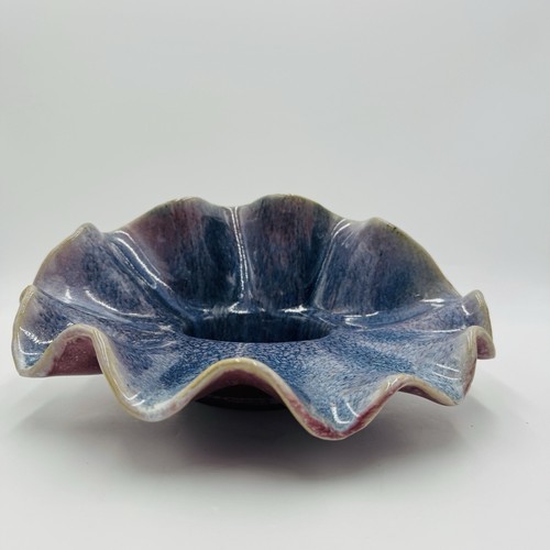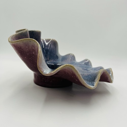 Studio Art Pottery Shell Large Candle Holder MCM Vintage Pink Purple Signed Rare
