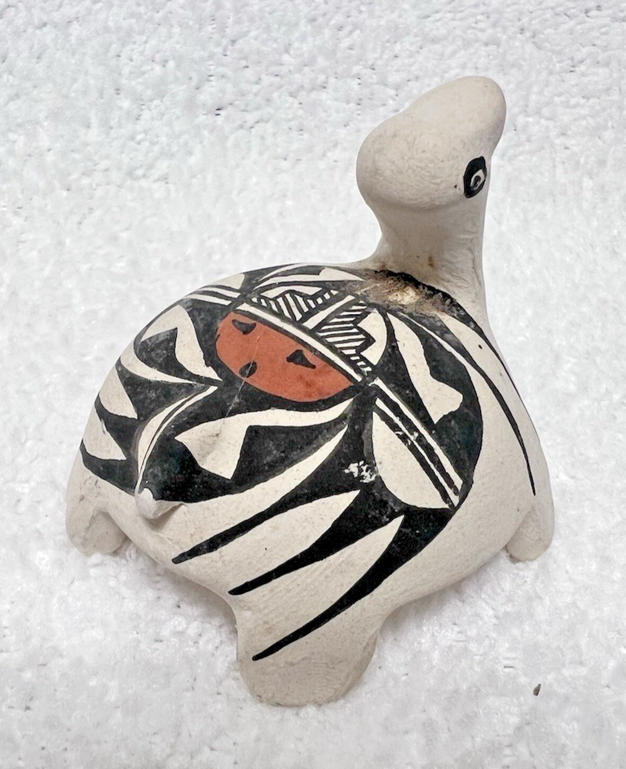 Vintage Signed Pottery White Turtle Hand Painted Native American Art New Mexico