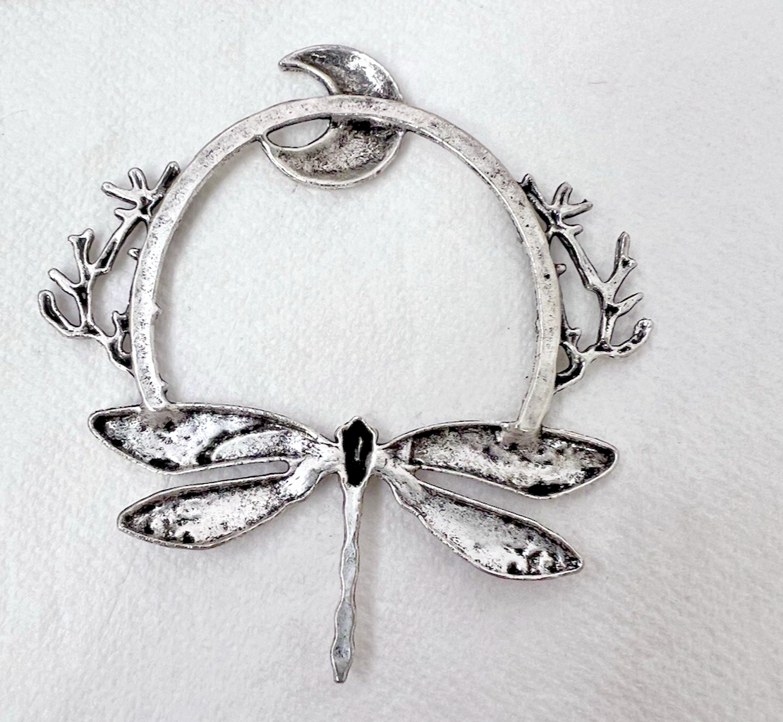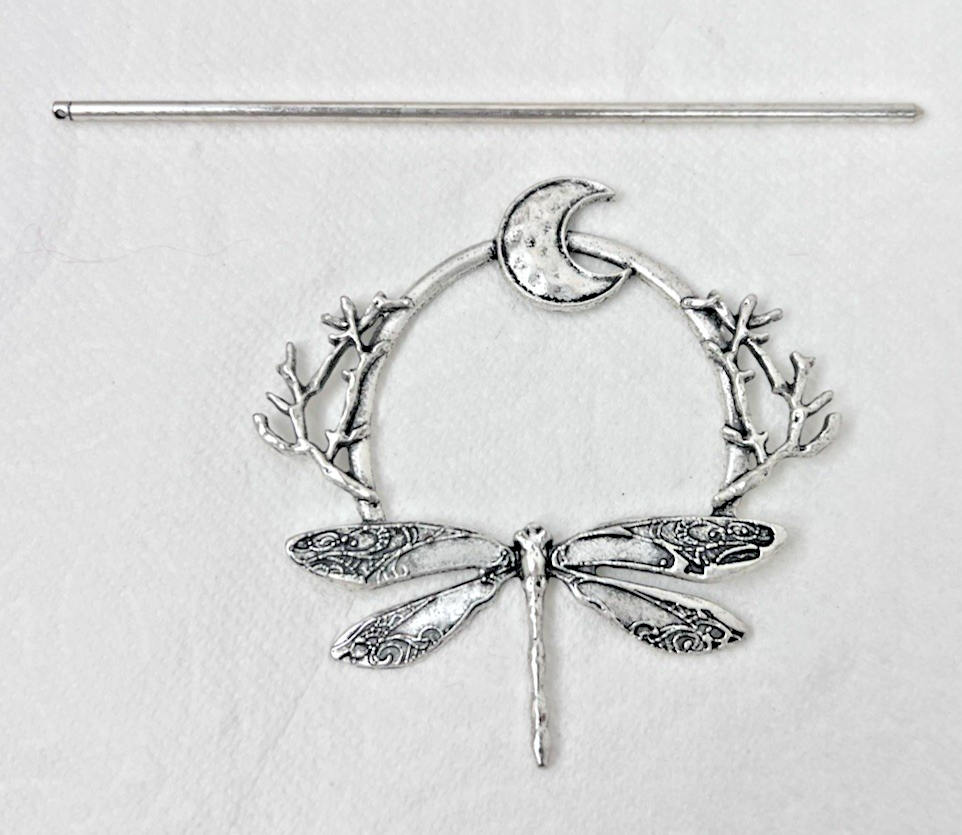 Dragonfly Crescent Moon Hair Bun Ponytail Holder Silvertone Metal
