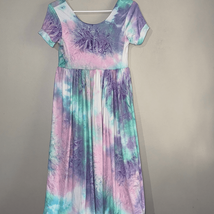 Vibrant tie-dye maxi dress featuring shades of purple and green. Perfect for a casual day out.
