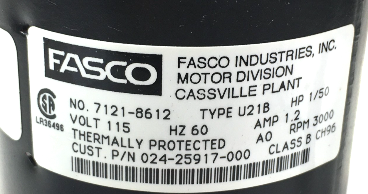 FASCO 7121-8612 Furnace Inducer Blower Motor 024-25917-000 115V used #MS192