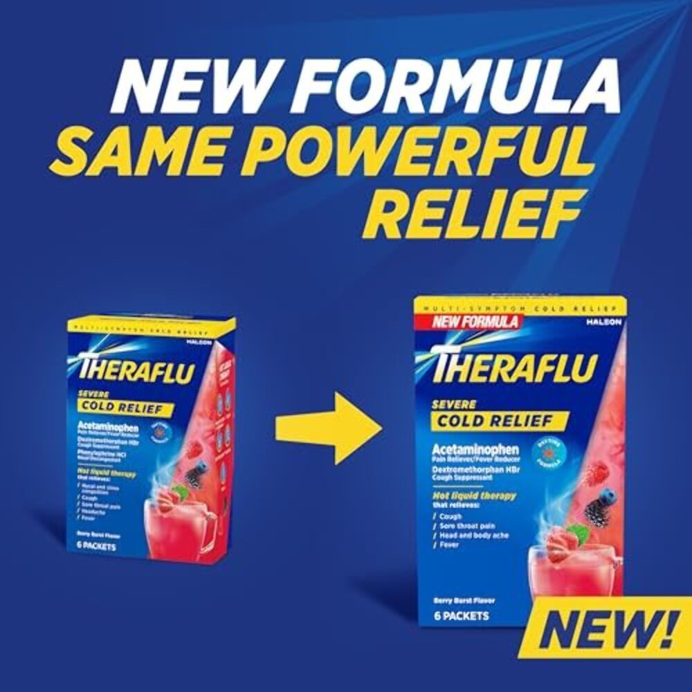 3 BOXES THERAFLU Cold Relief Packets, Berry Burst , 6 count TOTAL 18 Expiration Date of 01/2027