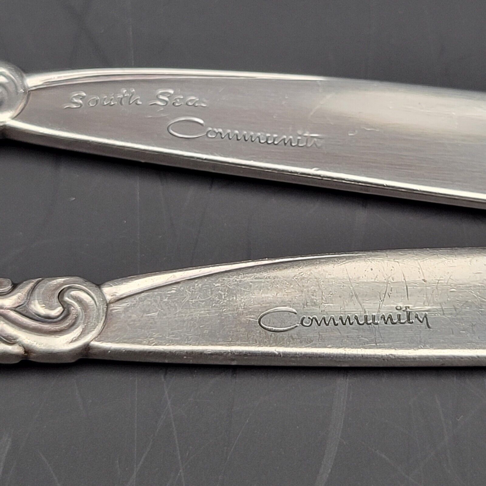 Vintage Onedia Community South Seas Silverplate 1955 Sugar Spoons &small Fork