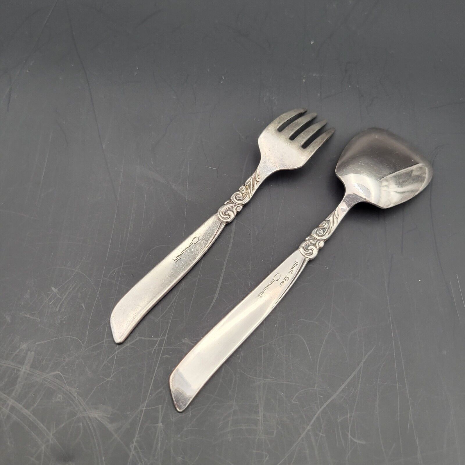 This vintage silver plated flatware set from Onedia Community South Seas includes two sugar spoons and a small fork. The intricate design of the South Seas model adds a touch of elegance to any dining experience. Made from high-quality materials, this set is durable and long-lasting. Perfect for any collector or lover of antique flatware.