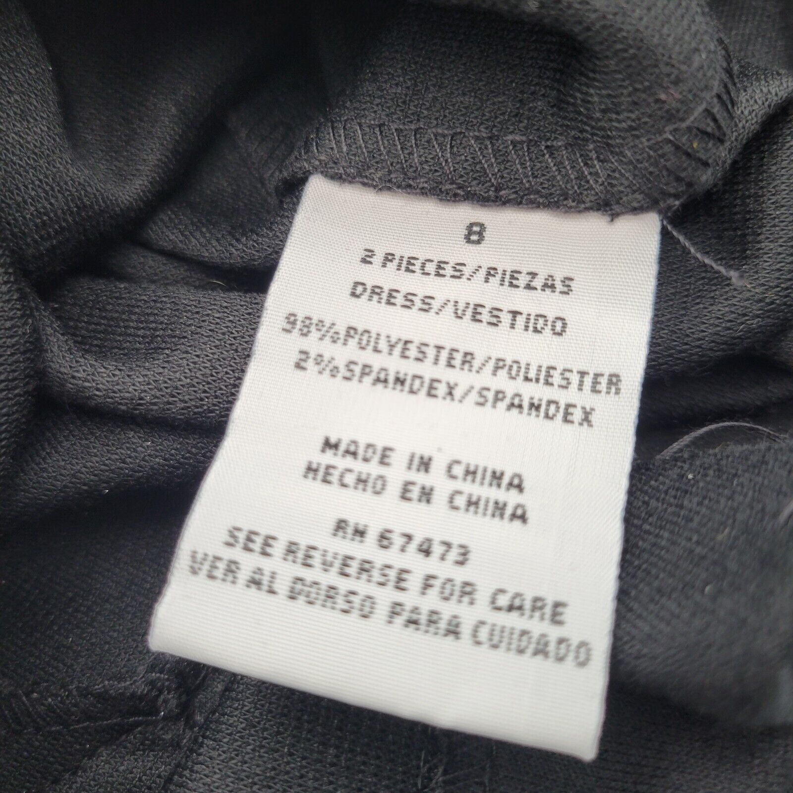 This stunning set includes a long-sleeved V-neck black dress and a matching ivory coat, both in size 8 and brand new with tags. The dress features a tie closure and a collared neckline, with a vintage 80s theme and elegant button accents. The coat is made of rayon fabric and is machine washable for easy care.
