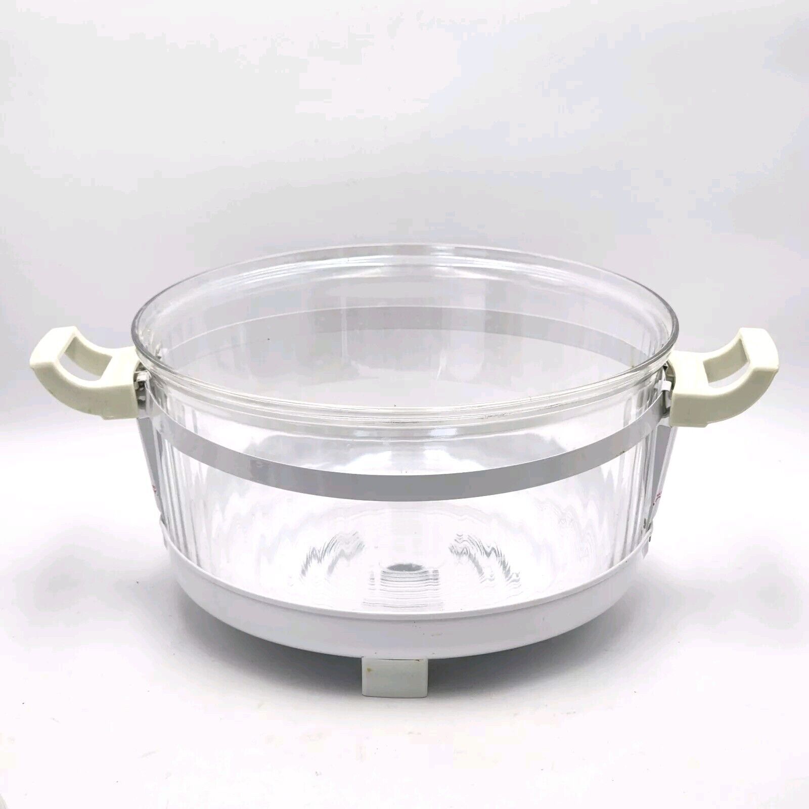 Introducing the Galloping Gourmet AX707 Perfection-Aire Convection Oven, a top-of-the-line kitchen appliance perfect for any home cook. This electric oven is designed with a broil cooking method and a power source of 120V 60Hz 1440W. The oven is made with high-quality glass and metal materials and includes components such as a rack, lid, glass bowl, and base. Includes everything shown in photos.
