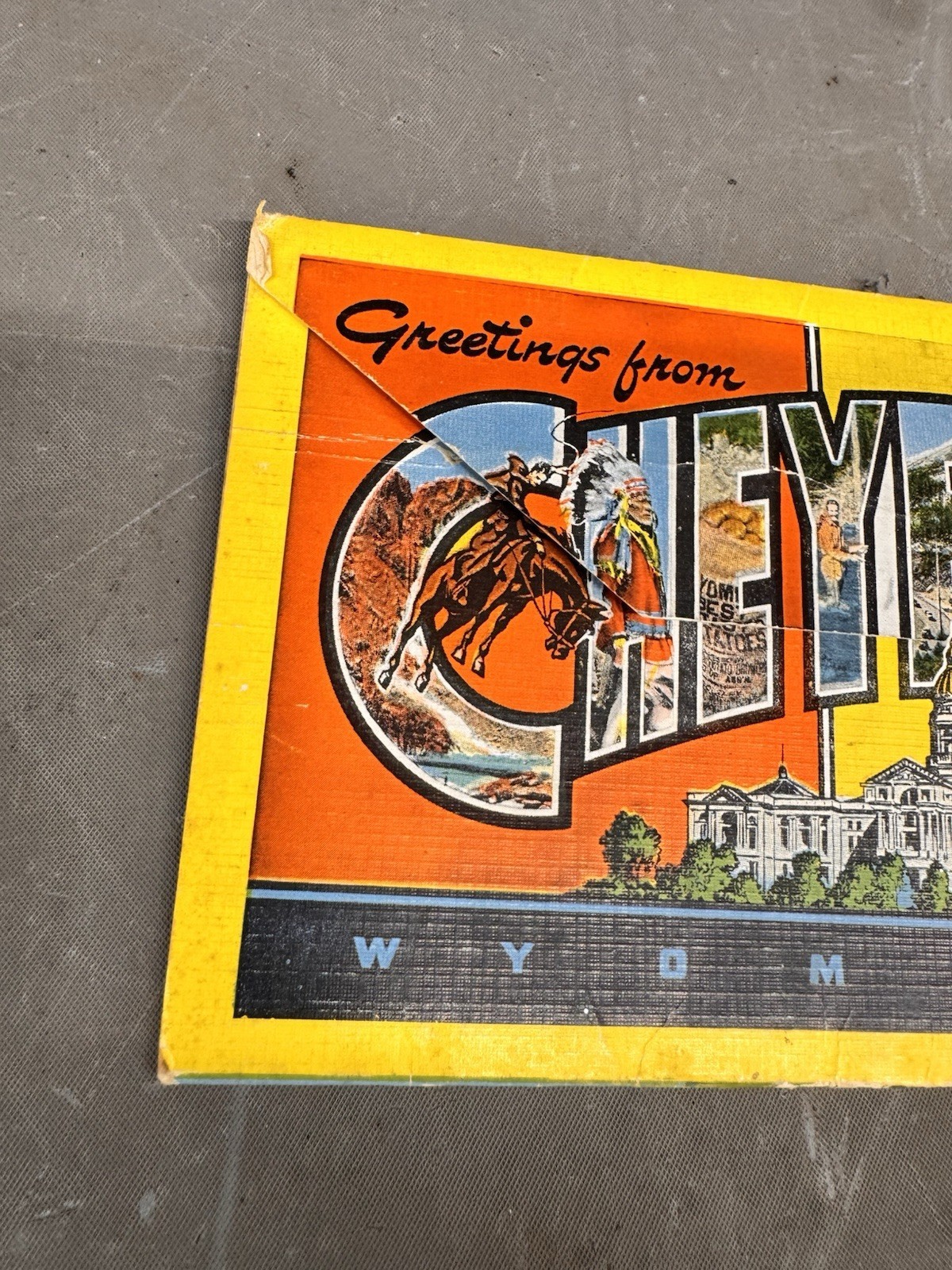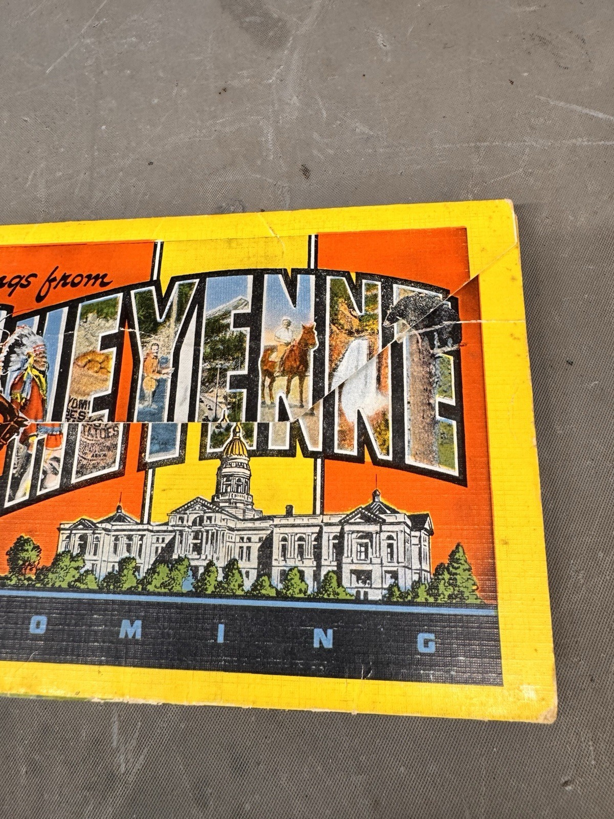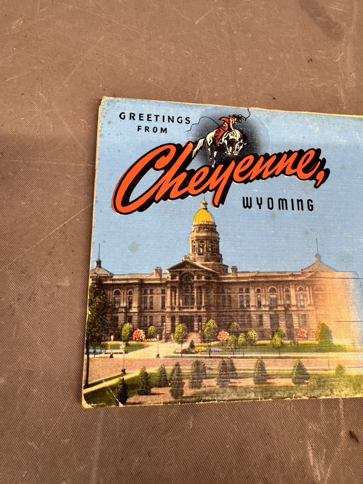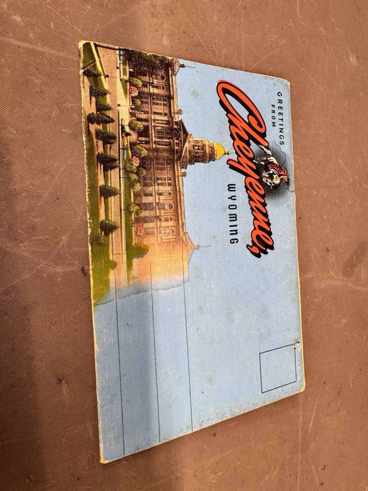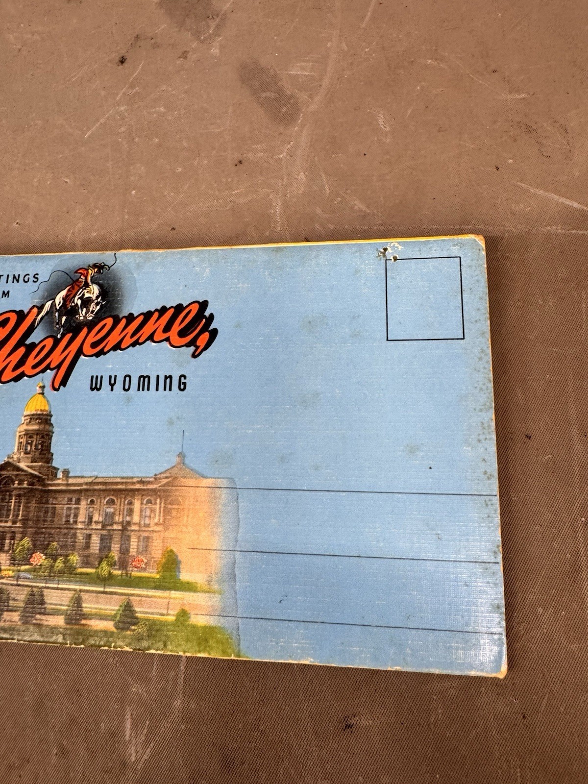 Vintage Wyoming State Postcard Unused Cheyenne Yellowstone National Park Buffalo