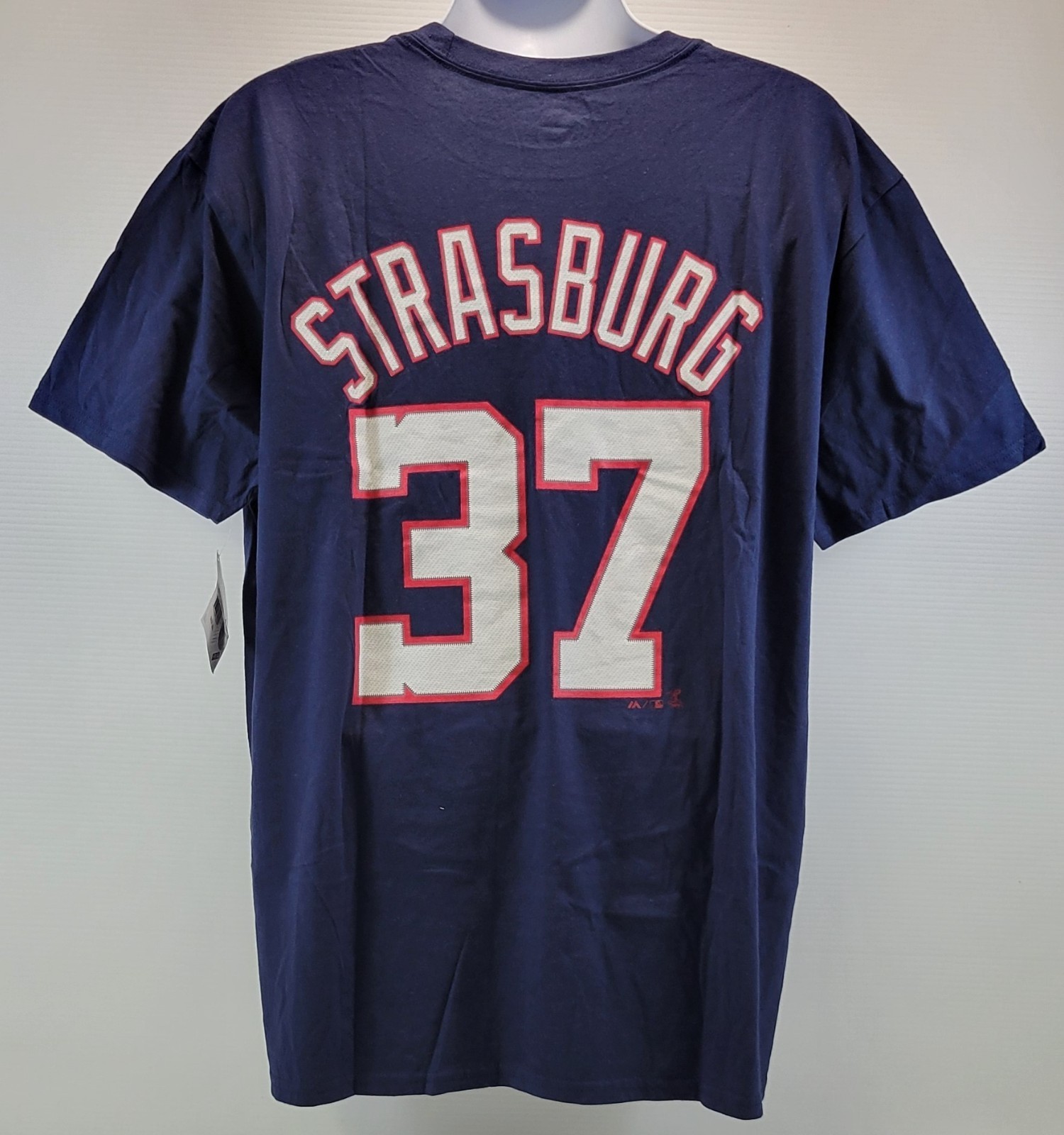 QQ) Majestic Stephen Strasburg Washington Nationals Men Blue Jersey Shirt 2XL