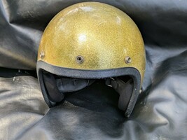 Casco Da Moto Vintage Norcon TW-1 Gold Sparkle Metallico Con Cinturino