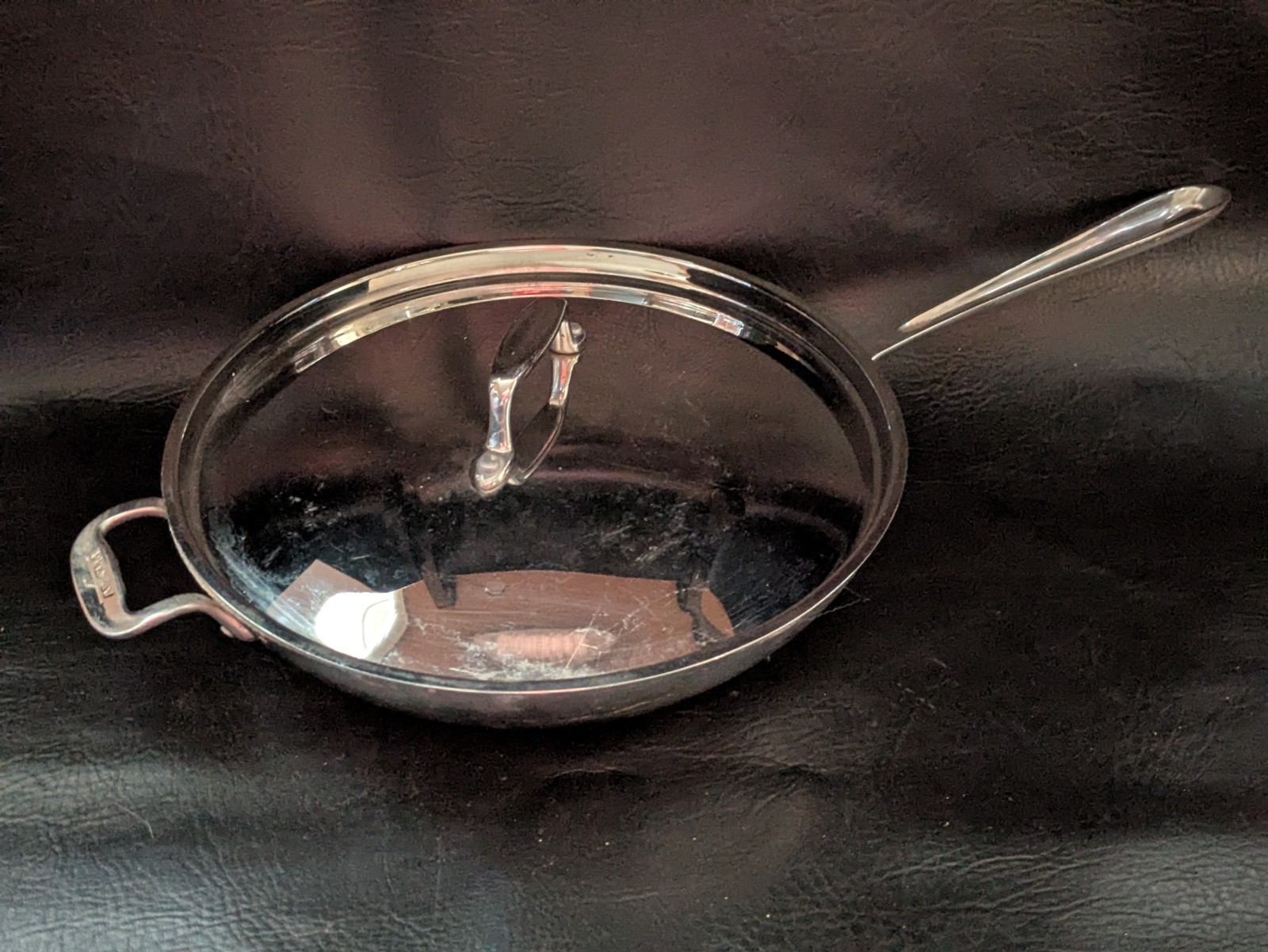 Le couvercle de poele a saute en acier inoxydable de 12 pouces entierement vetu est un essentiel de cuisine de haute qualite parfait pour preparer vos sautes preferes et vos plats poeles. Fabrique aux Etats-Unis, cet ensemble en deux pieces comprend un wok rond de couleur argentee avec un diametre de 12 pouces et un couvercle assorti. Fabrique a partir d'une combinaison d'aluminium et d'acier inoxydable, cette casserole dispose d'un design a fond plat et d'une longue poignee pour la cuisson facile. Compatible avec les poeles electriques et a gaz, ce wok est un ajout polyvalent a toute cuisine, adapte a une utilisation dans le gaz ou les fours electriques. Ideal pour les cuisiniers a la maison a la recherche de ustensiles de cuisine durables et efficaces.